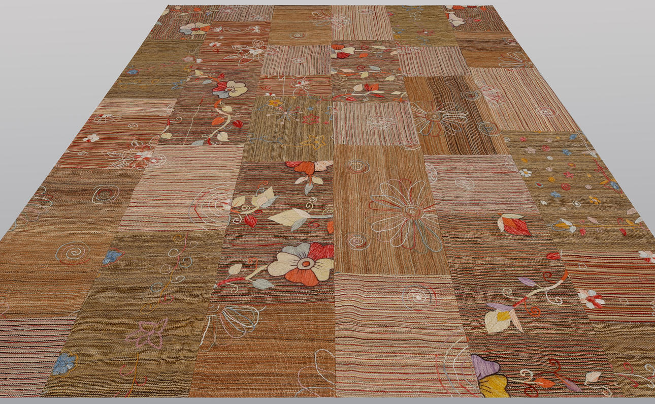 ORIENT CARPET. Kelim, patchwork, hand-embroidered decor, 308 x 239 cm.