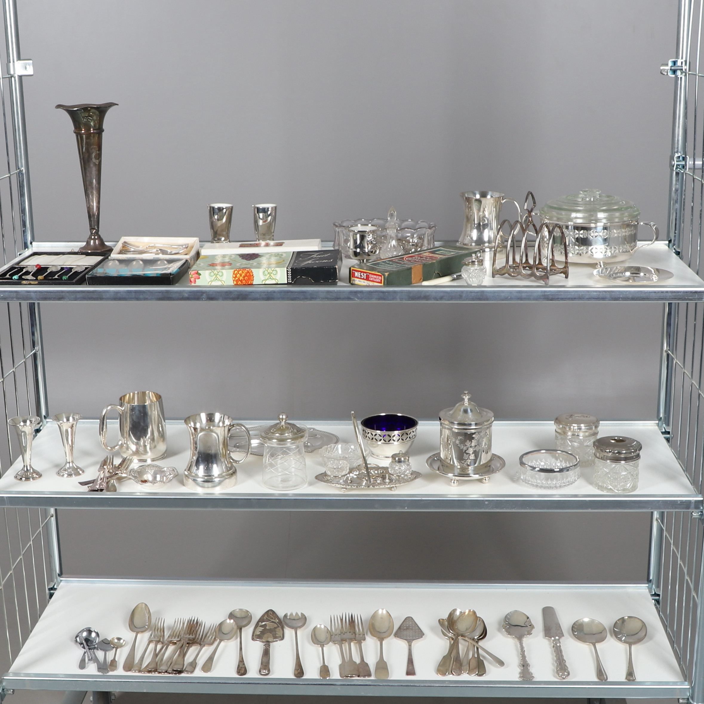 4391045. A LARGE QUANTITY OF SILVER PLATED ITEMS.