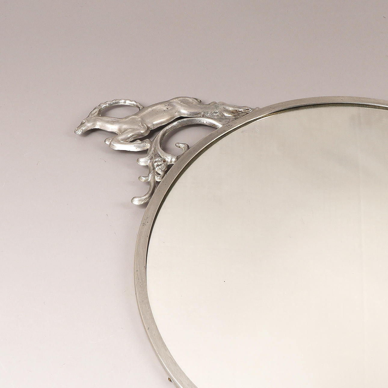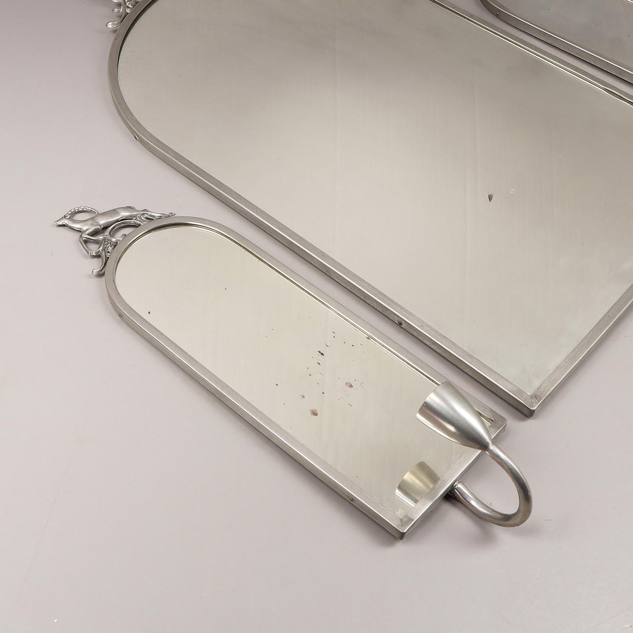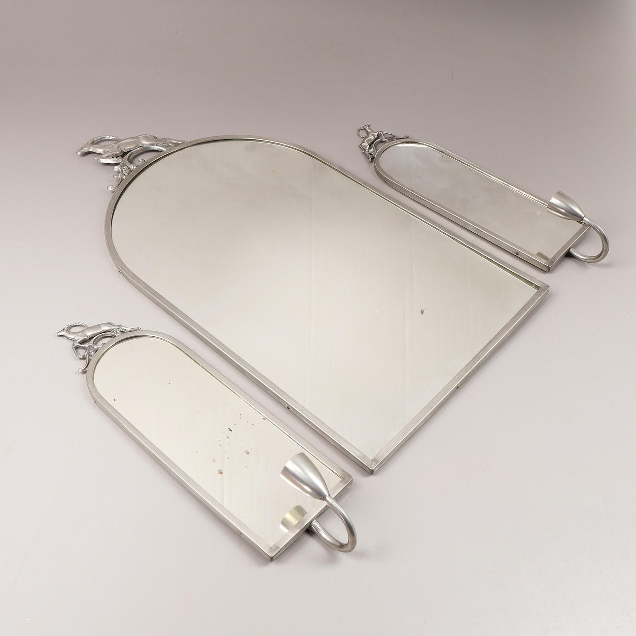 Mirror: height 51.5 cm, width 27.5 cm. Light sconces: heights 34 cm, widths 9.5 cm, depth from wall 6.5 cm.