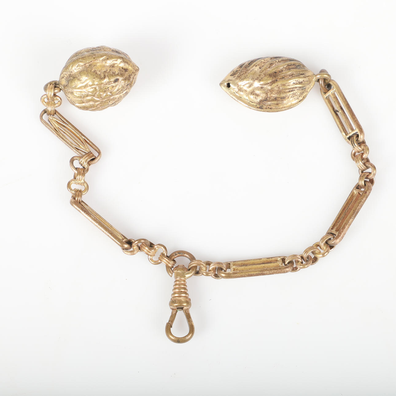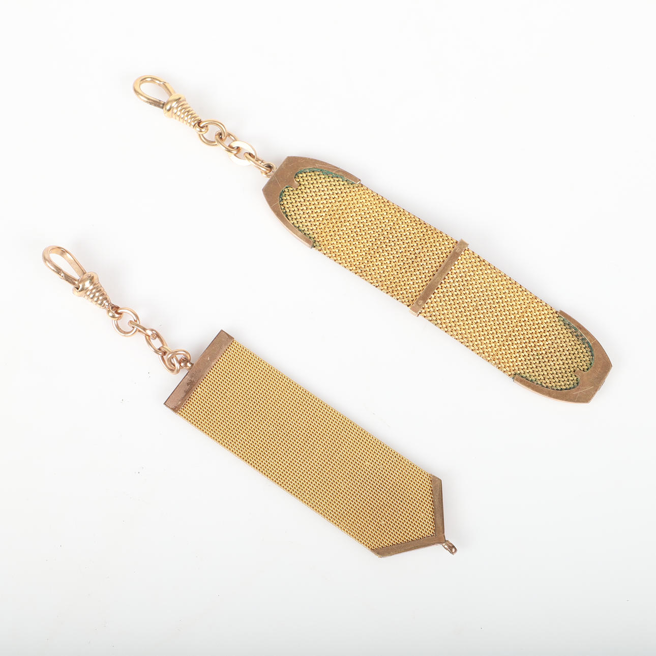 4392371. WATCH CHAINS AND CHATELAINE, 11 pieces, mostly gilt.