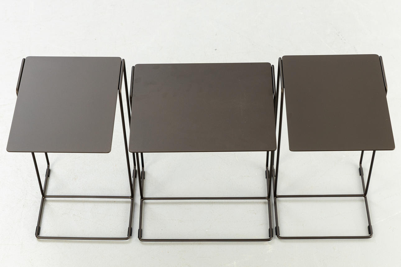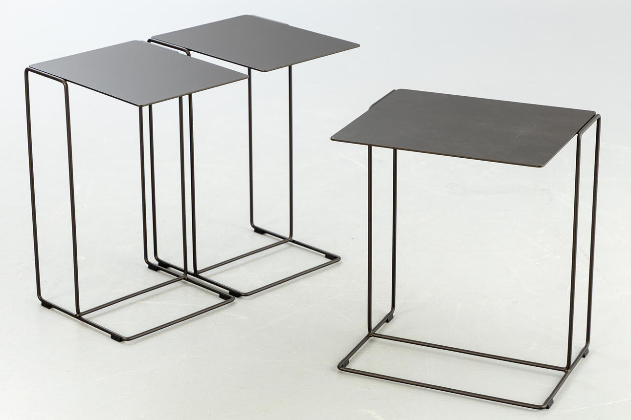 Design year: 2013. Aluminium table top, steel wire frame. Powder-coated in matte bronze