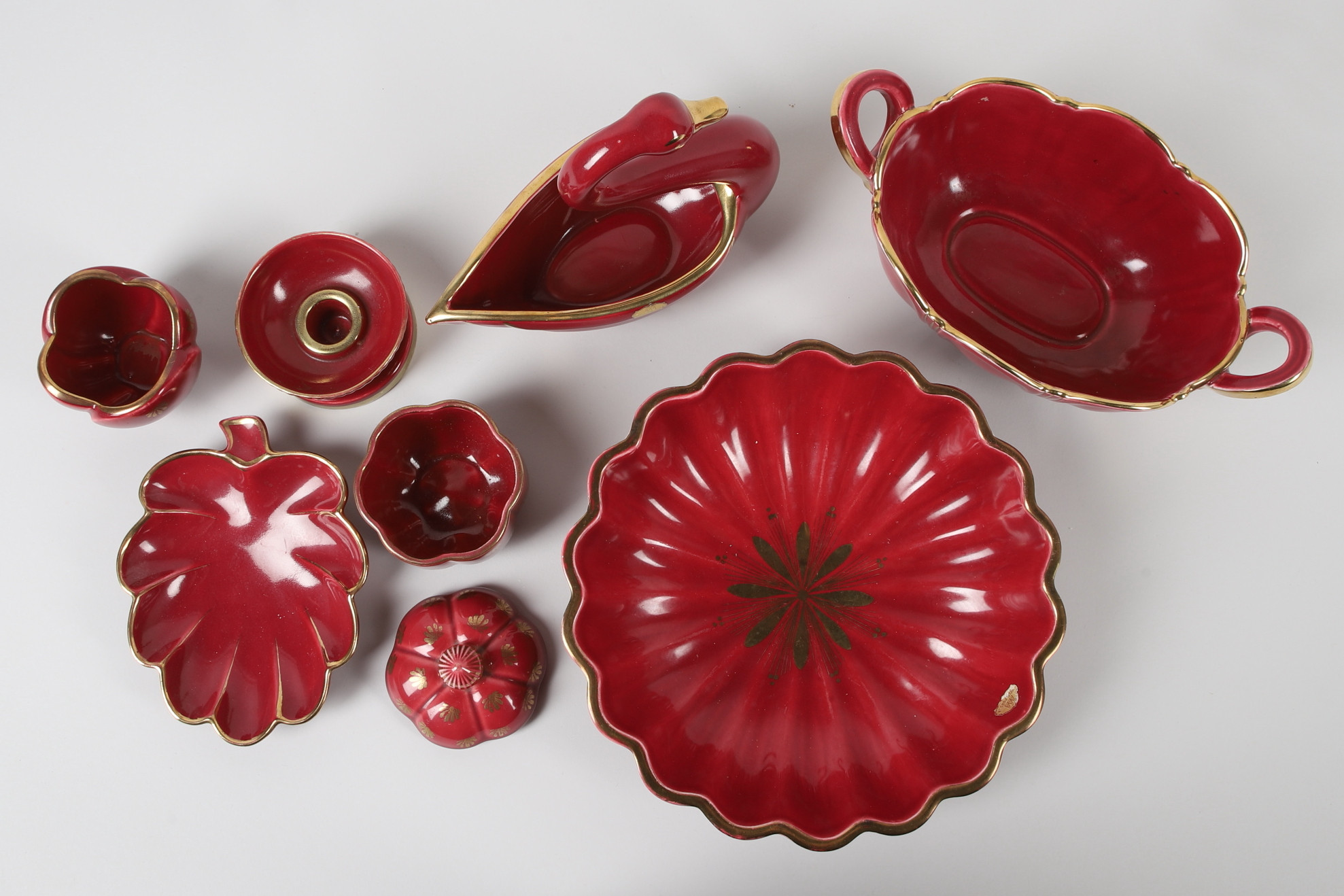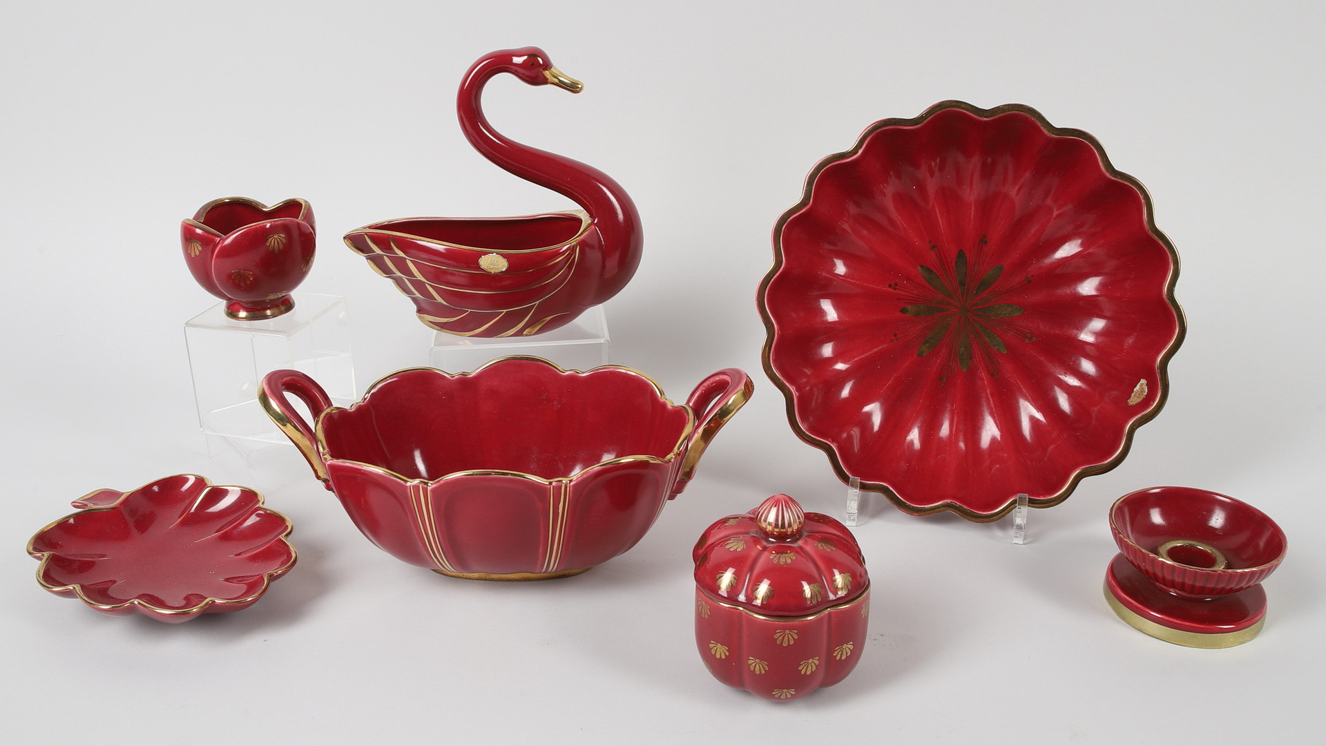 4392588. ARTHUR PERCY. porcelain objects, 7 pcs, “Red ruby”, Gefle.