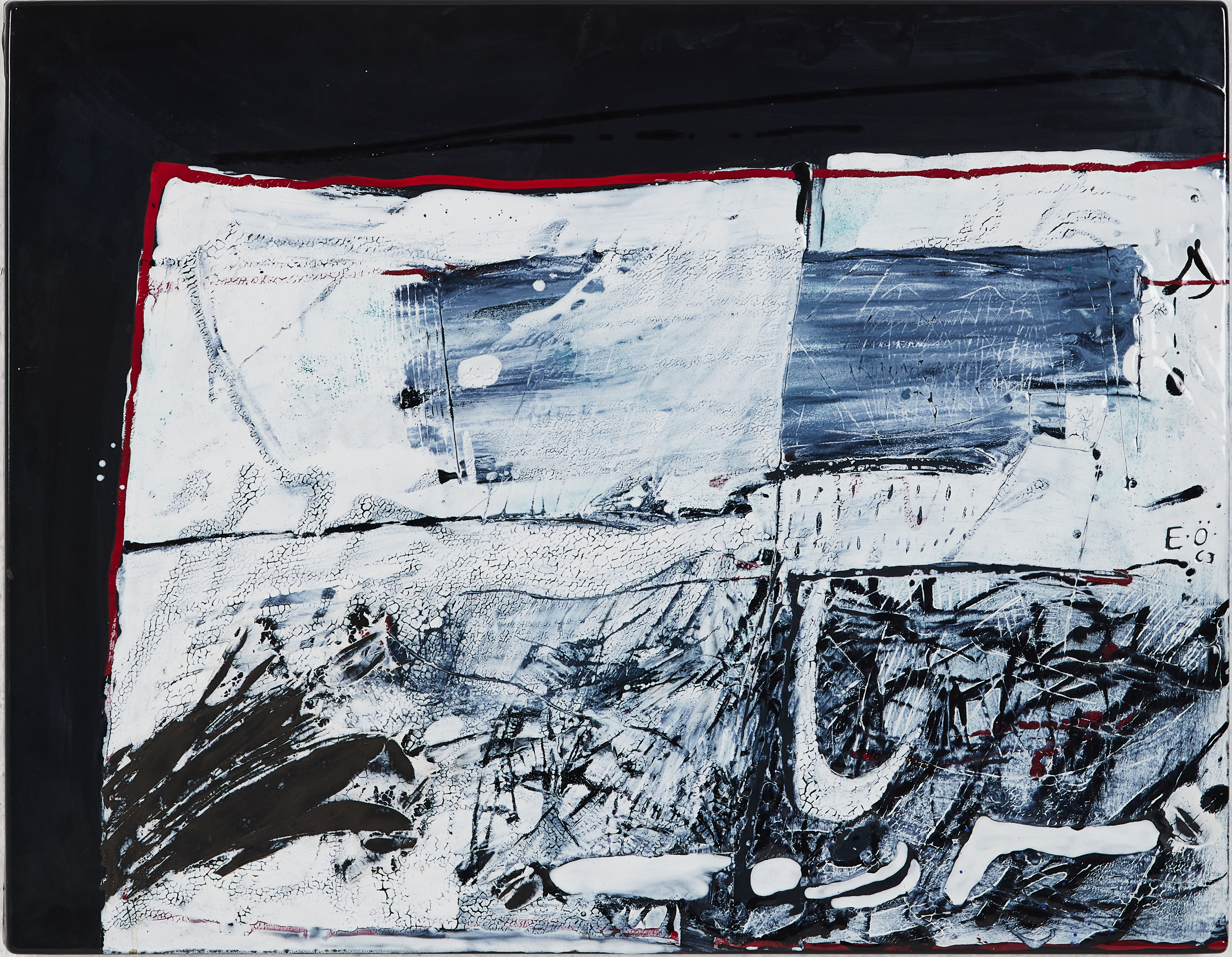 4392627. EJE ÖBERG (1929-2000). composition, enamelled plate, monogram signed EÖ.