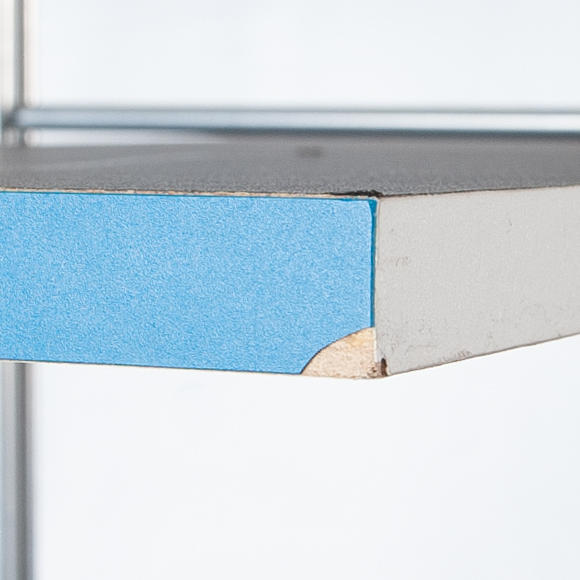 Reversible shelves, one side anthracite colored, other white. gables made of metal.