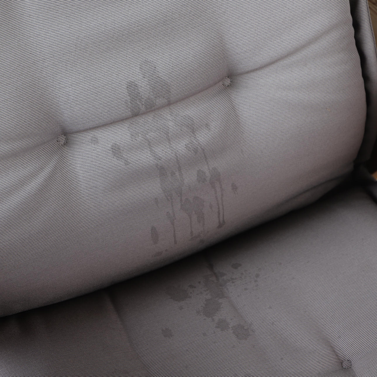 Abrasions, stains and wear after outdoor use.