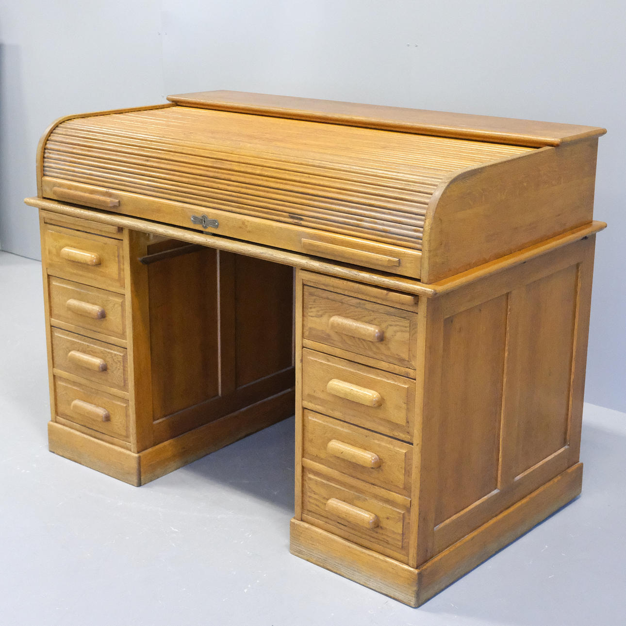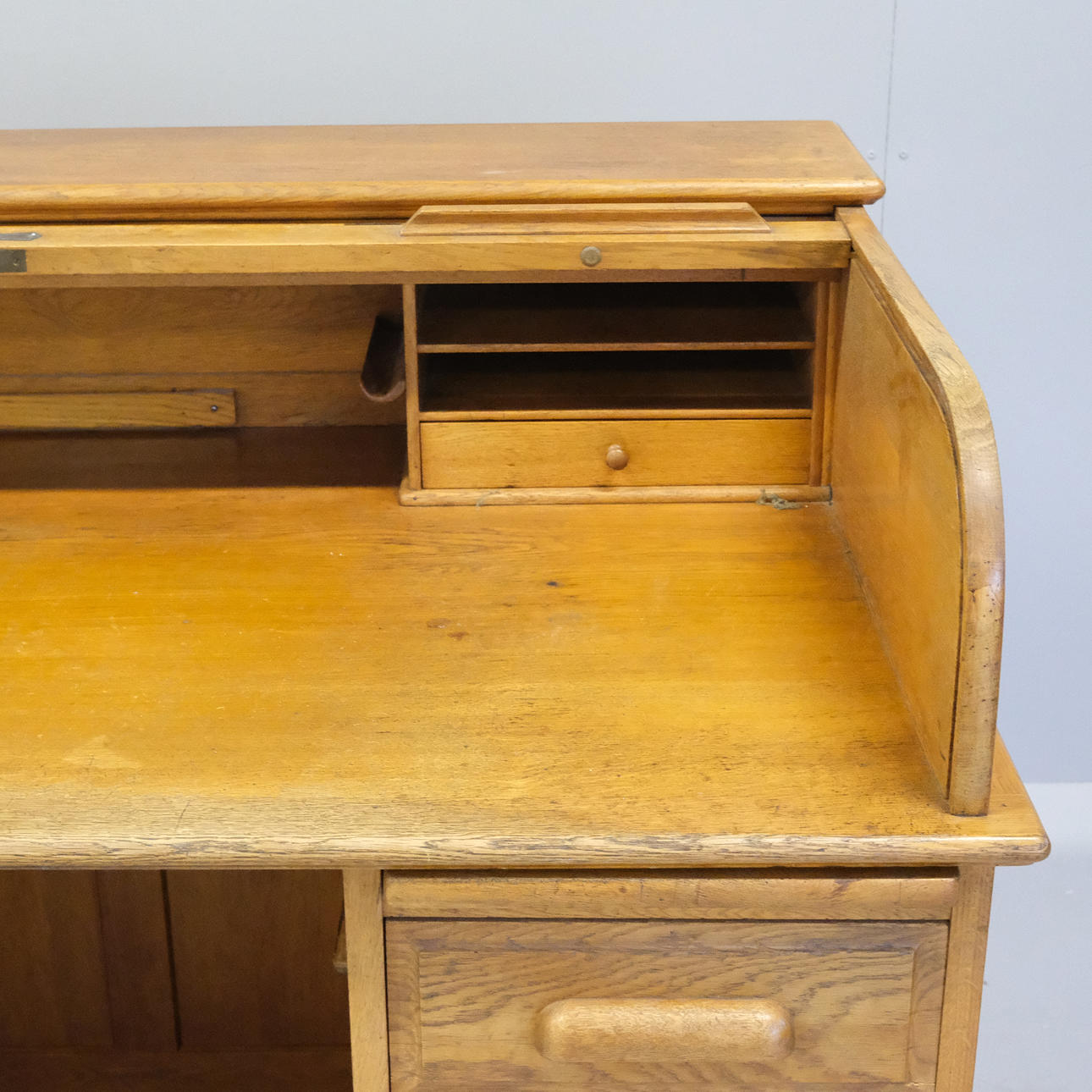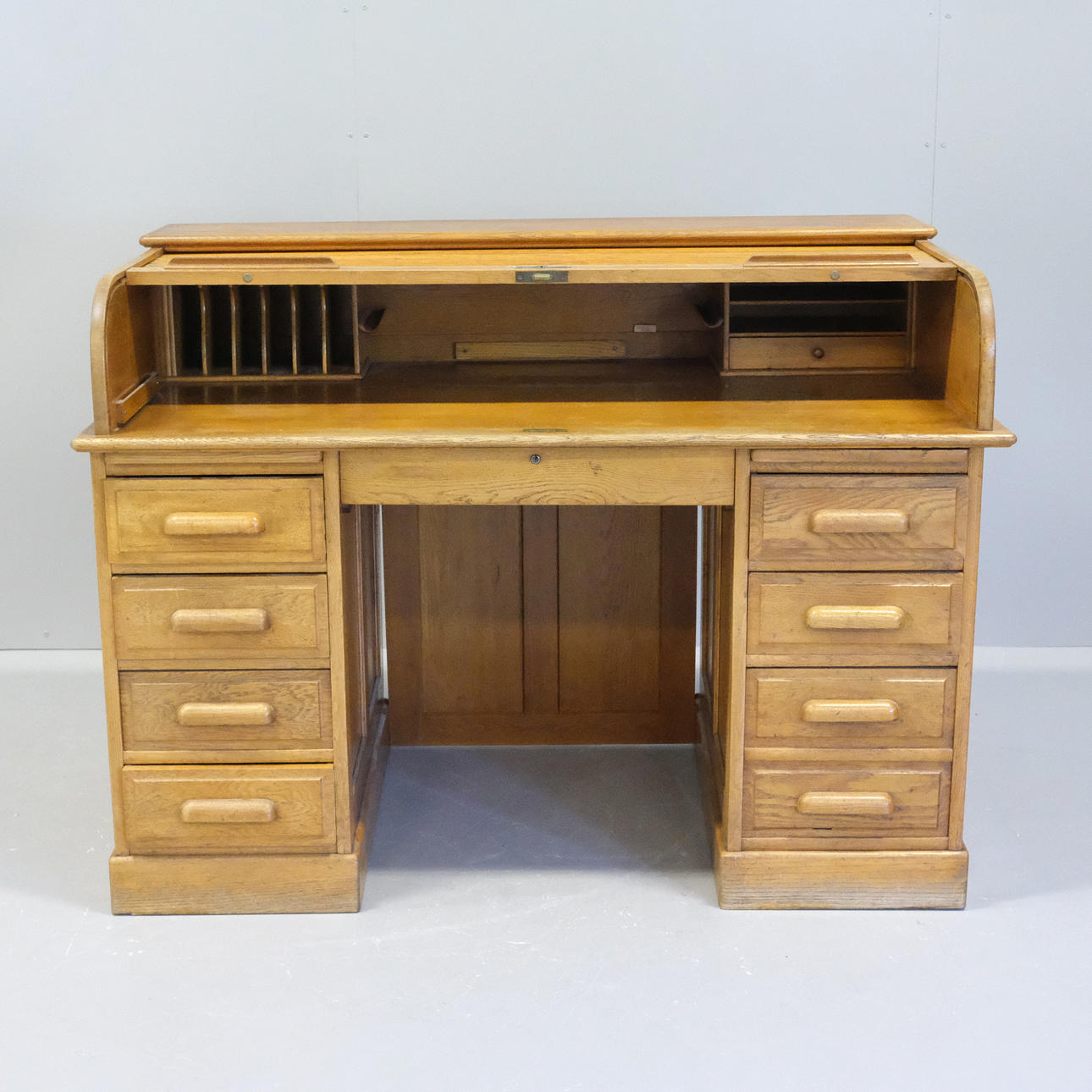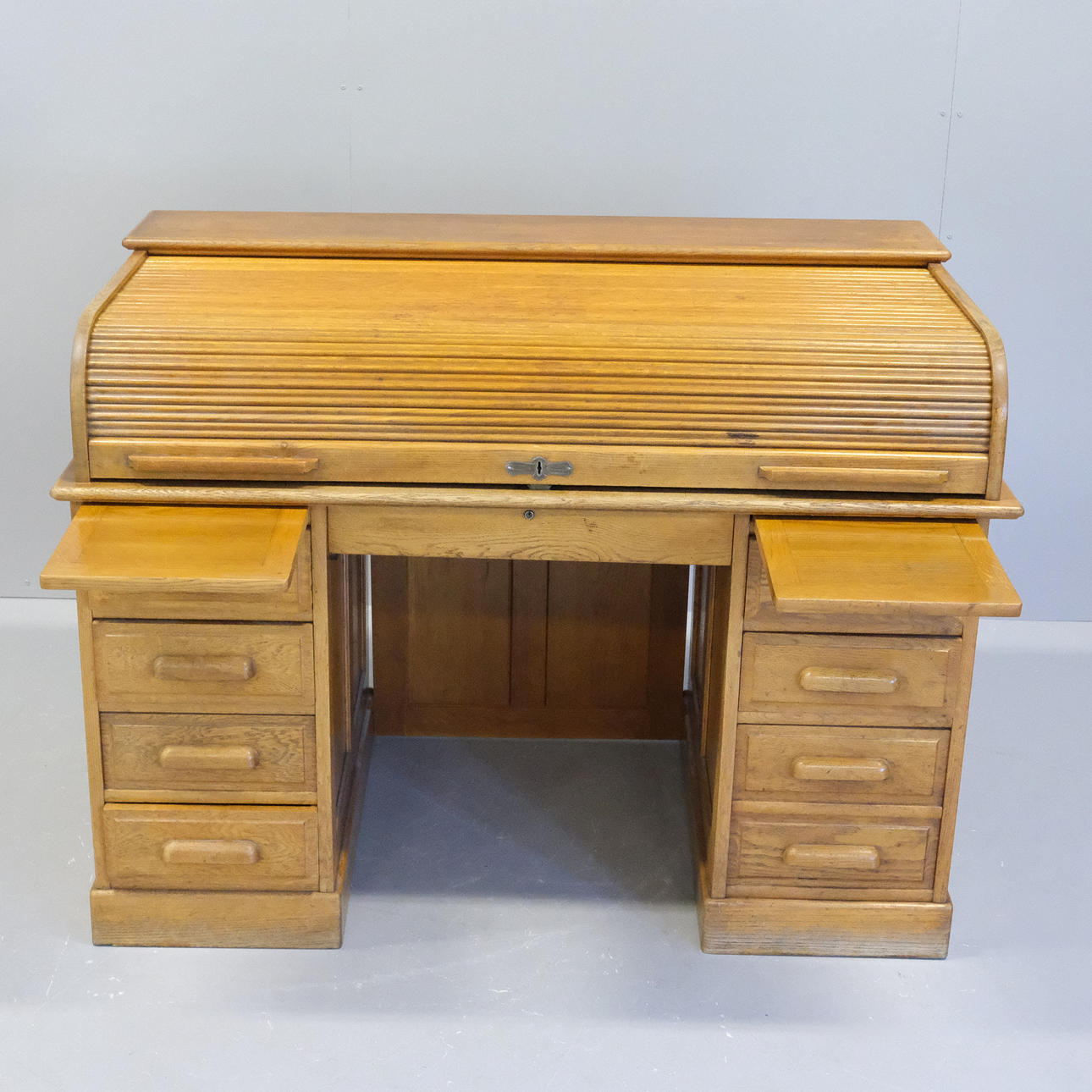 4393112. DESK WITH SHUTTERS, CIRCA 1900, OAK.
