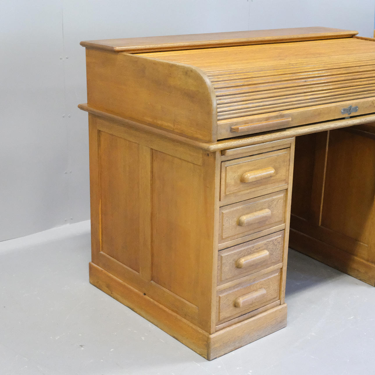 DESK WITH SHUTTERS, CIRCA 1900, OAK.