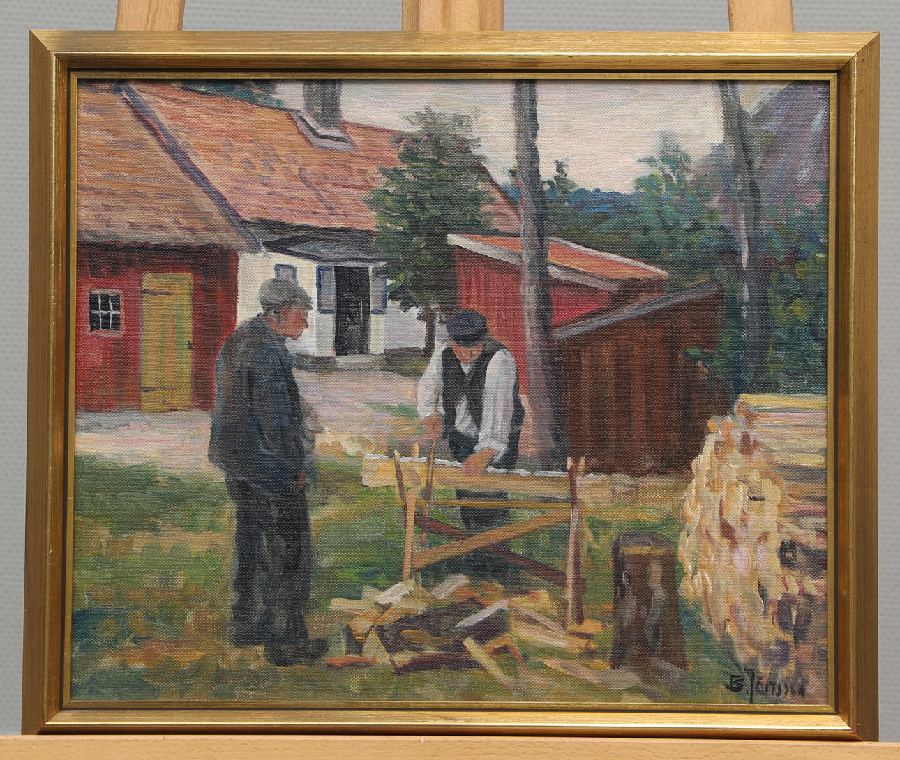 4393197. BROR JÖNSSON. oil on canvas, figural scene, signed.