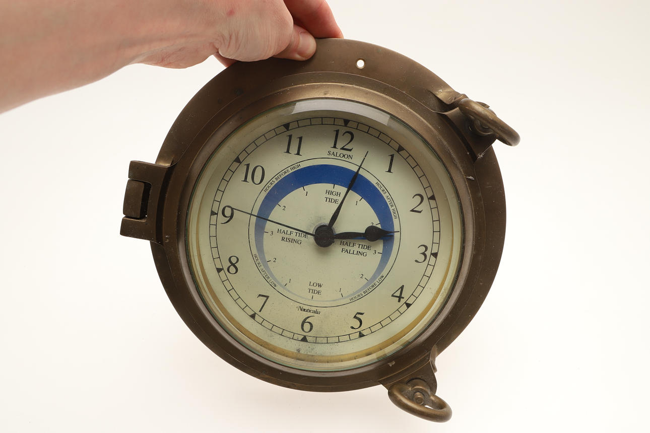 the painted dial signed Nauticalia, within brass port hole style frame, 22cm diameter (2).