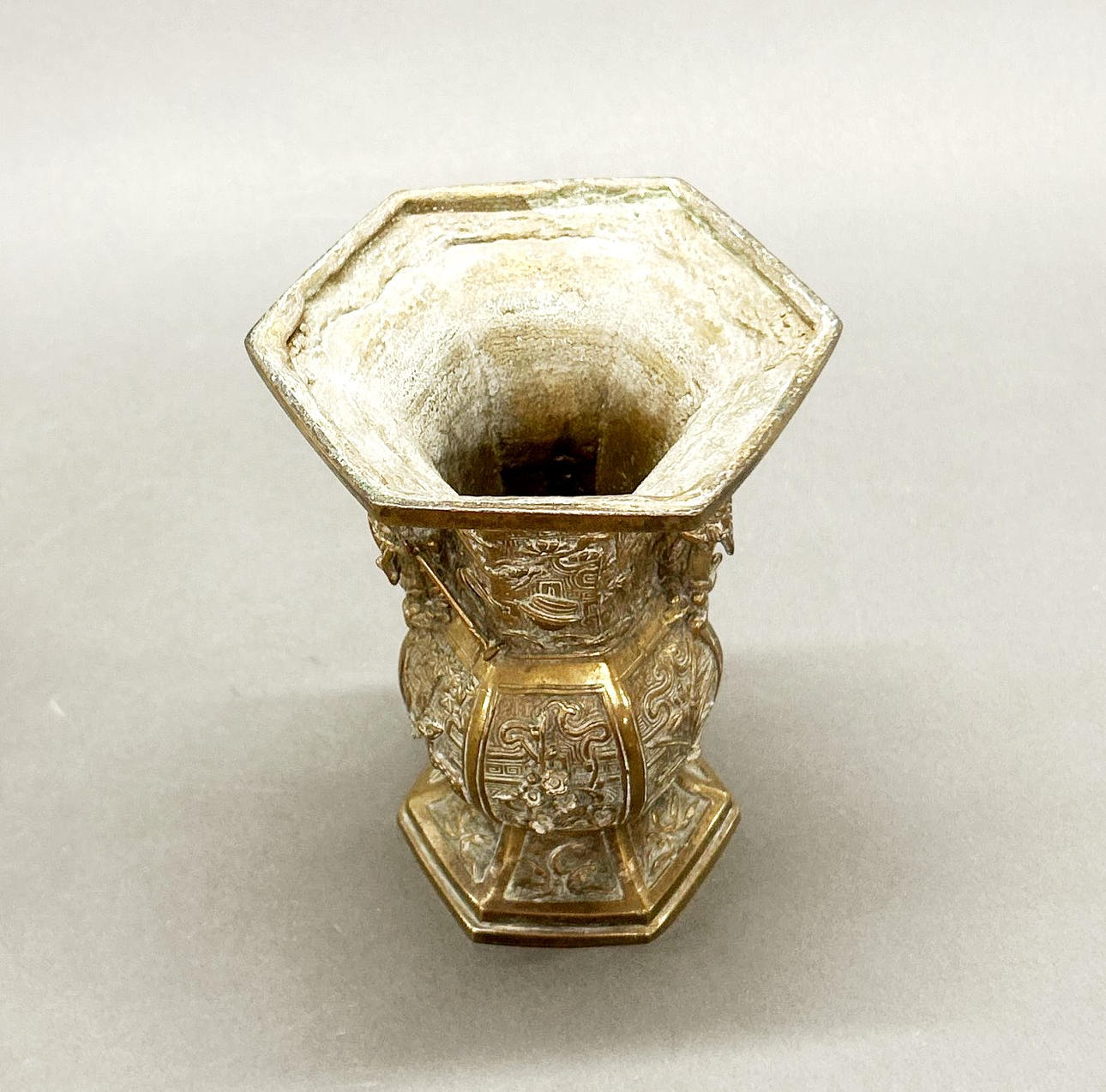 An early 20thC Chinese brass/bronze hexagonal vase, H. 17cm.