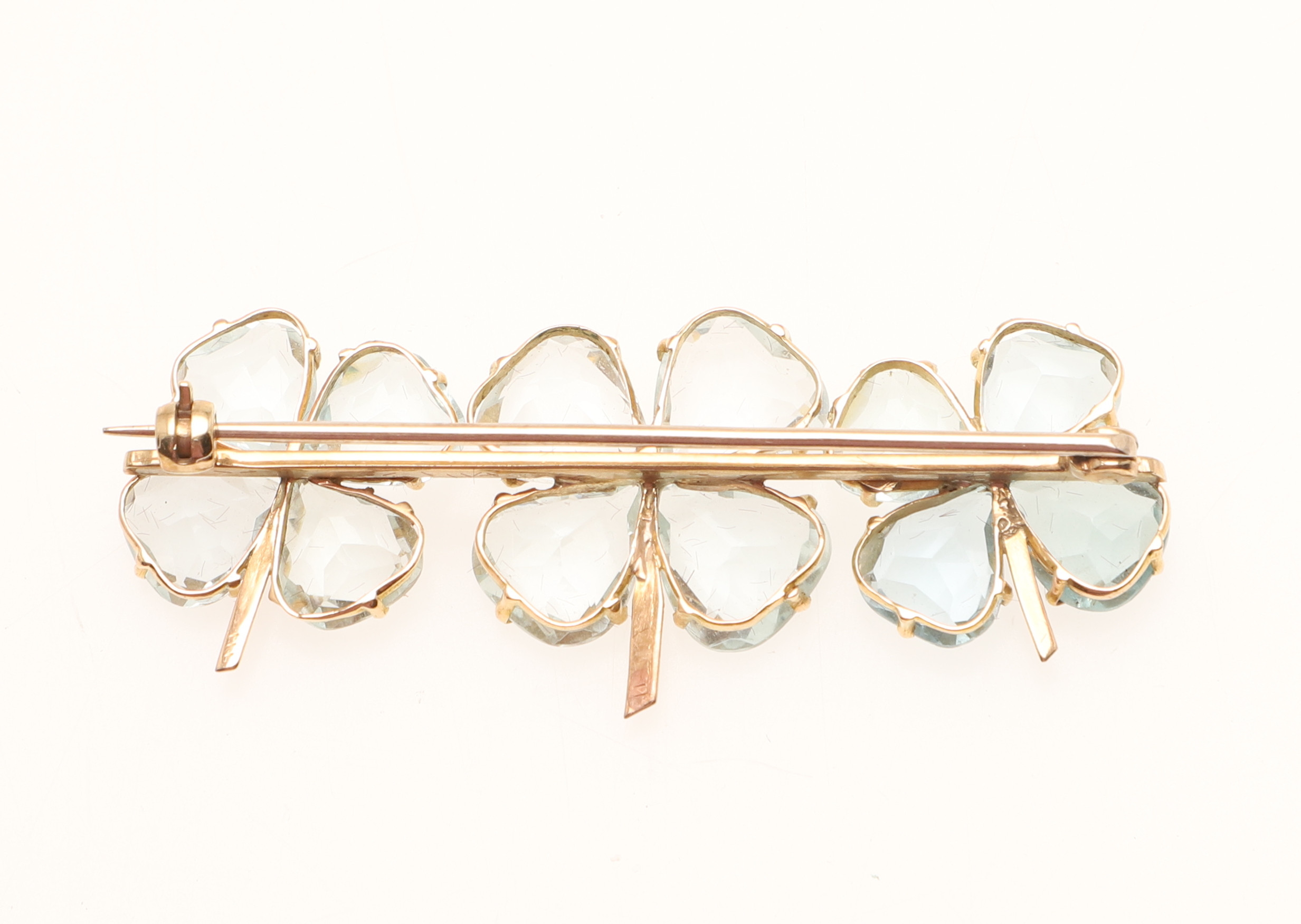 4393644. A TRIPLE FOUR LEAF CLOVER BROOCH.
