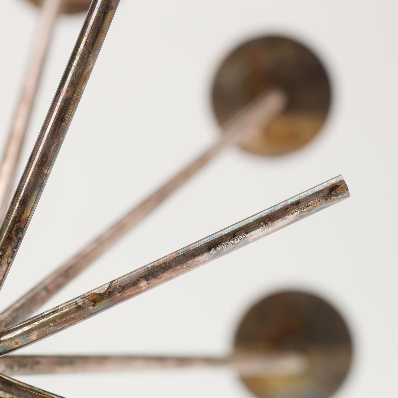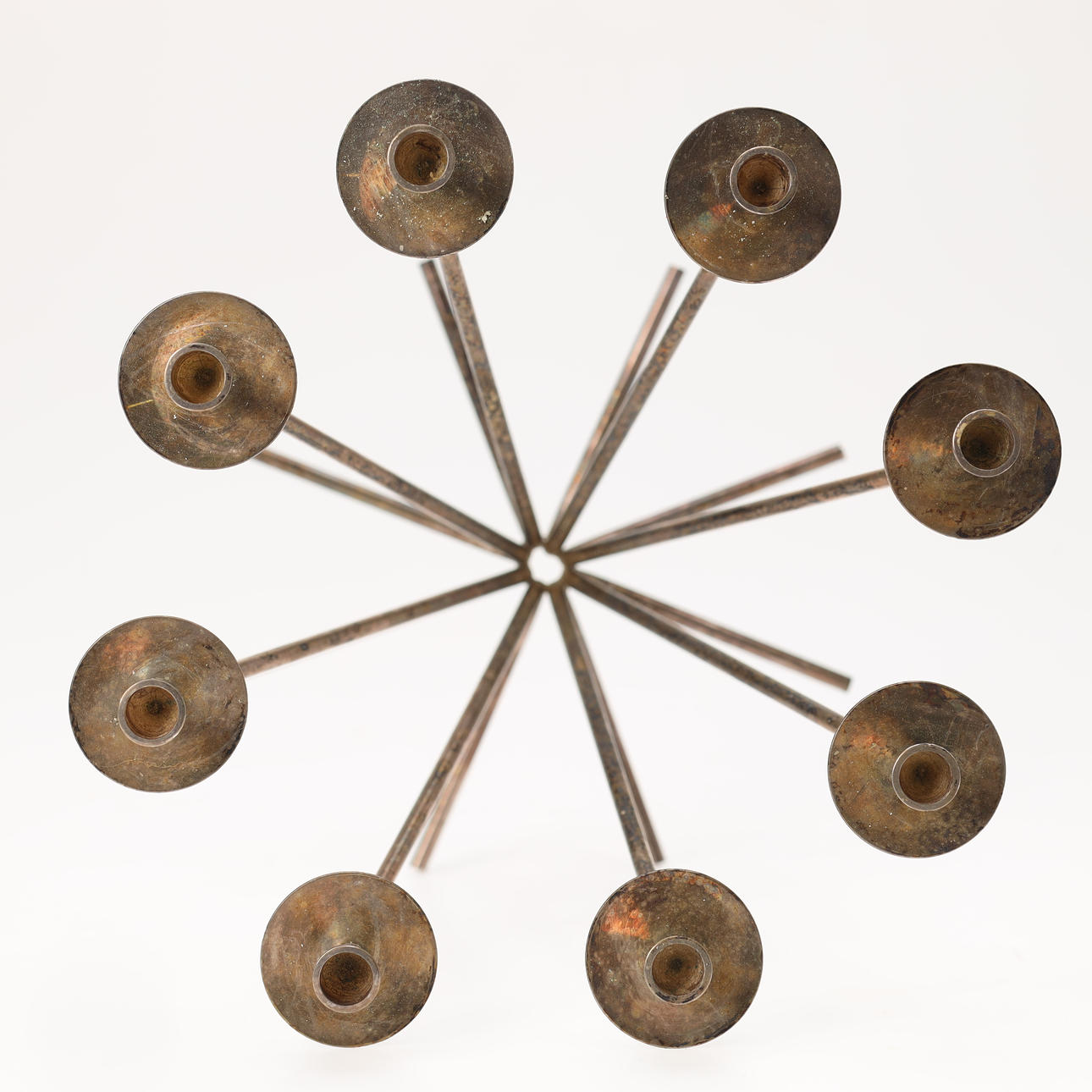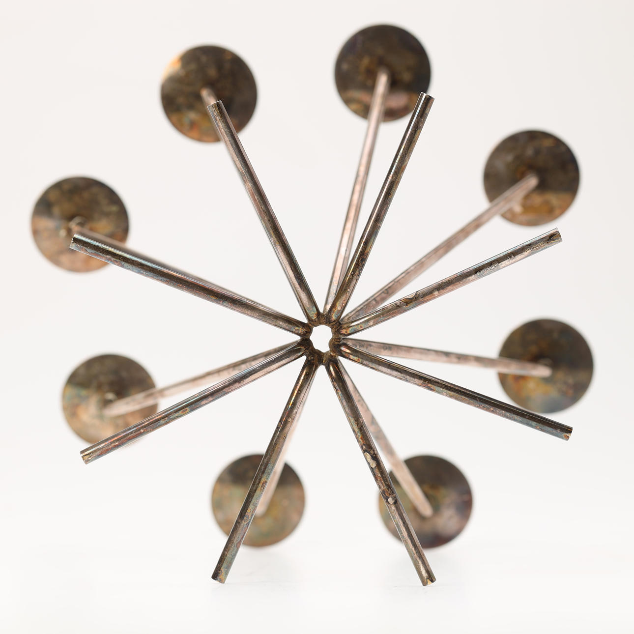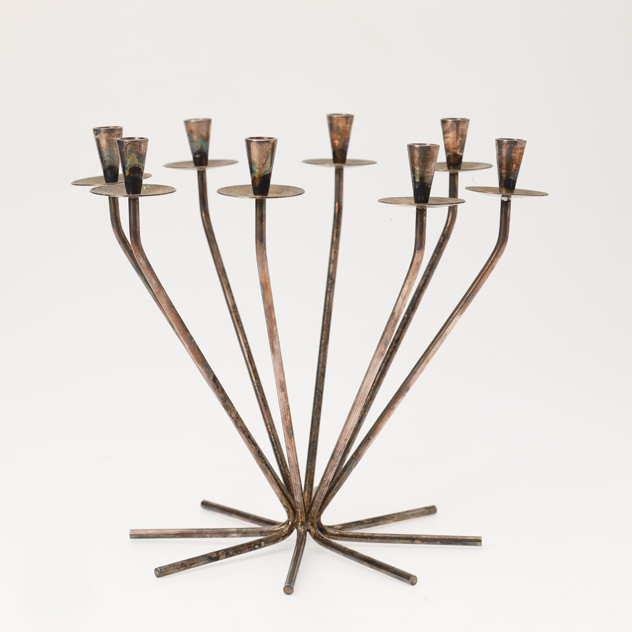 8-armed candlestick in silver stain. Made by the Danish silversmith Einar Dragsted and stamped “E.Dragsted 12 Denmark” under the foot.