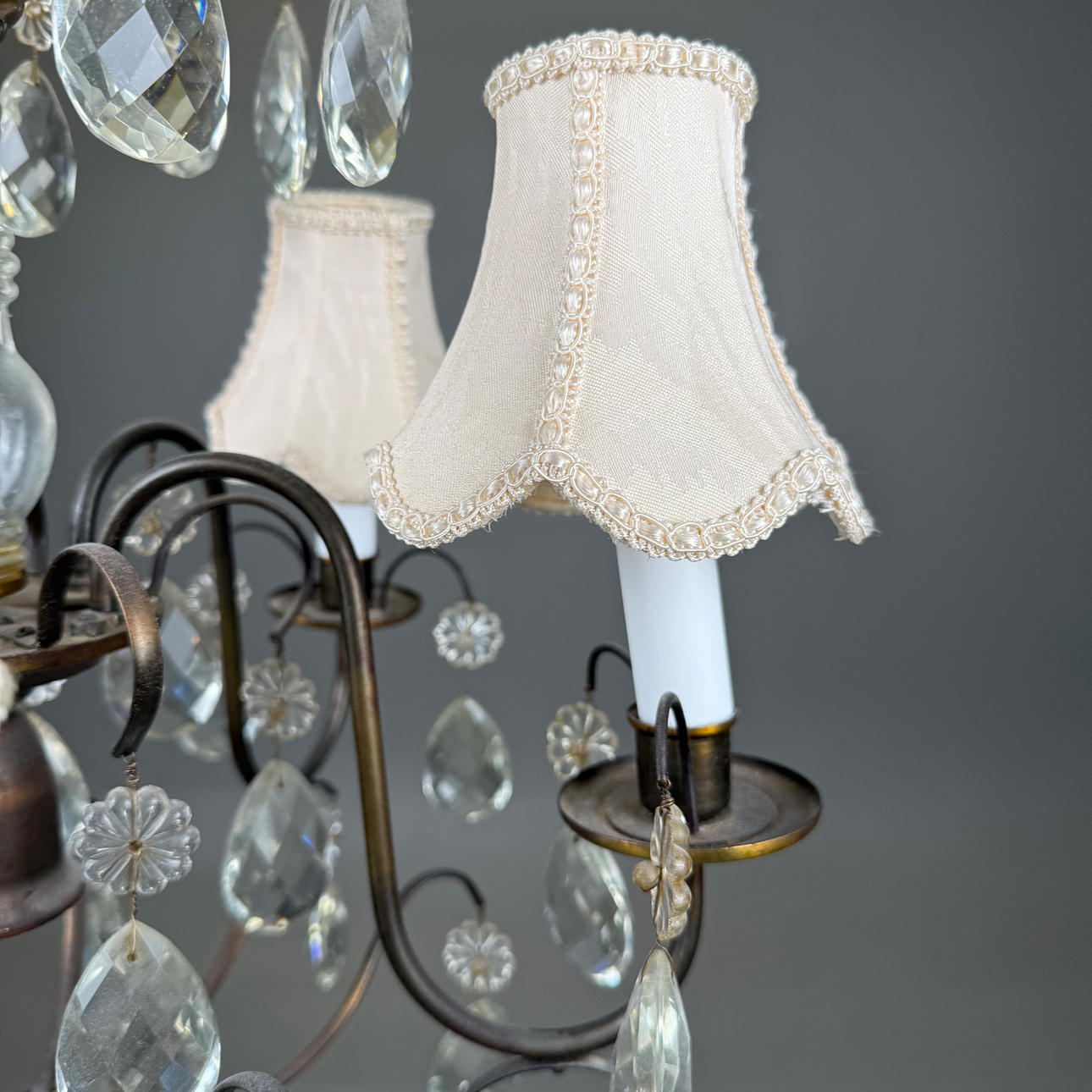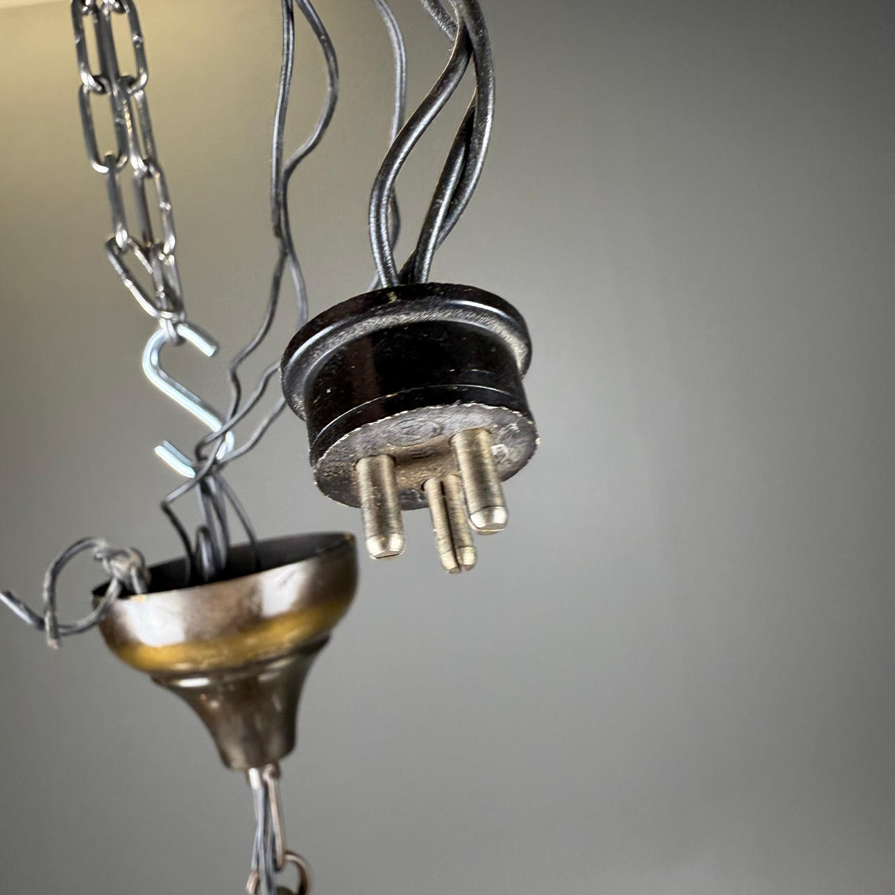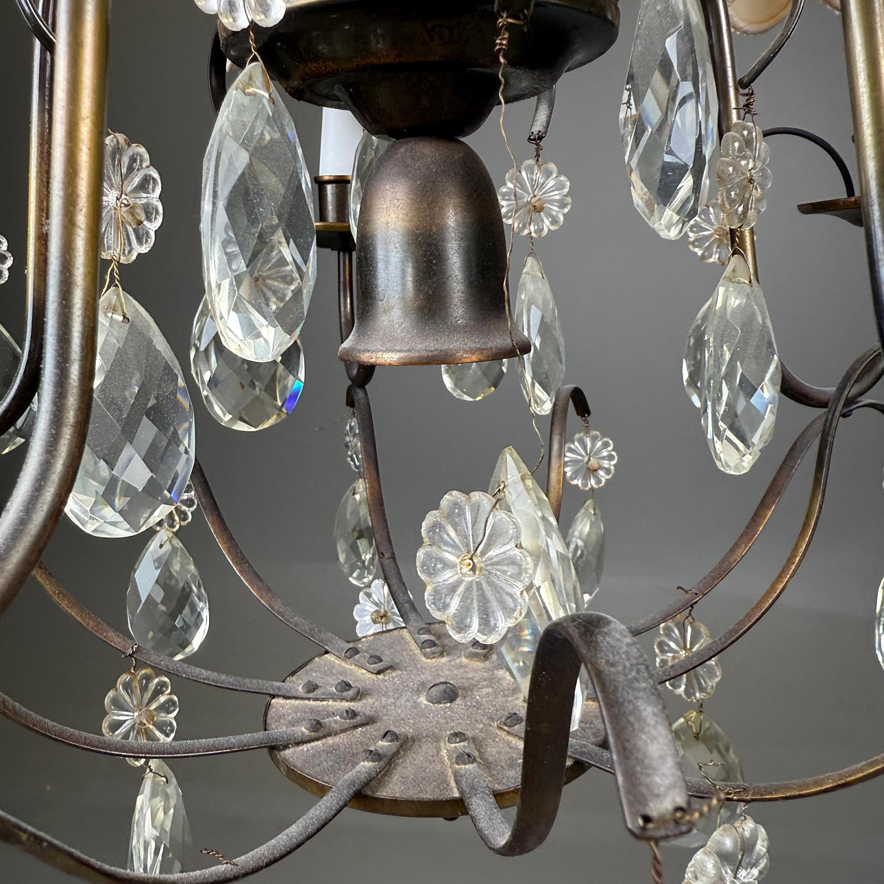 Hinged with prisms, 5 light points, Height without chain ca.60 cm, diameter ca.47 cm.