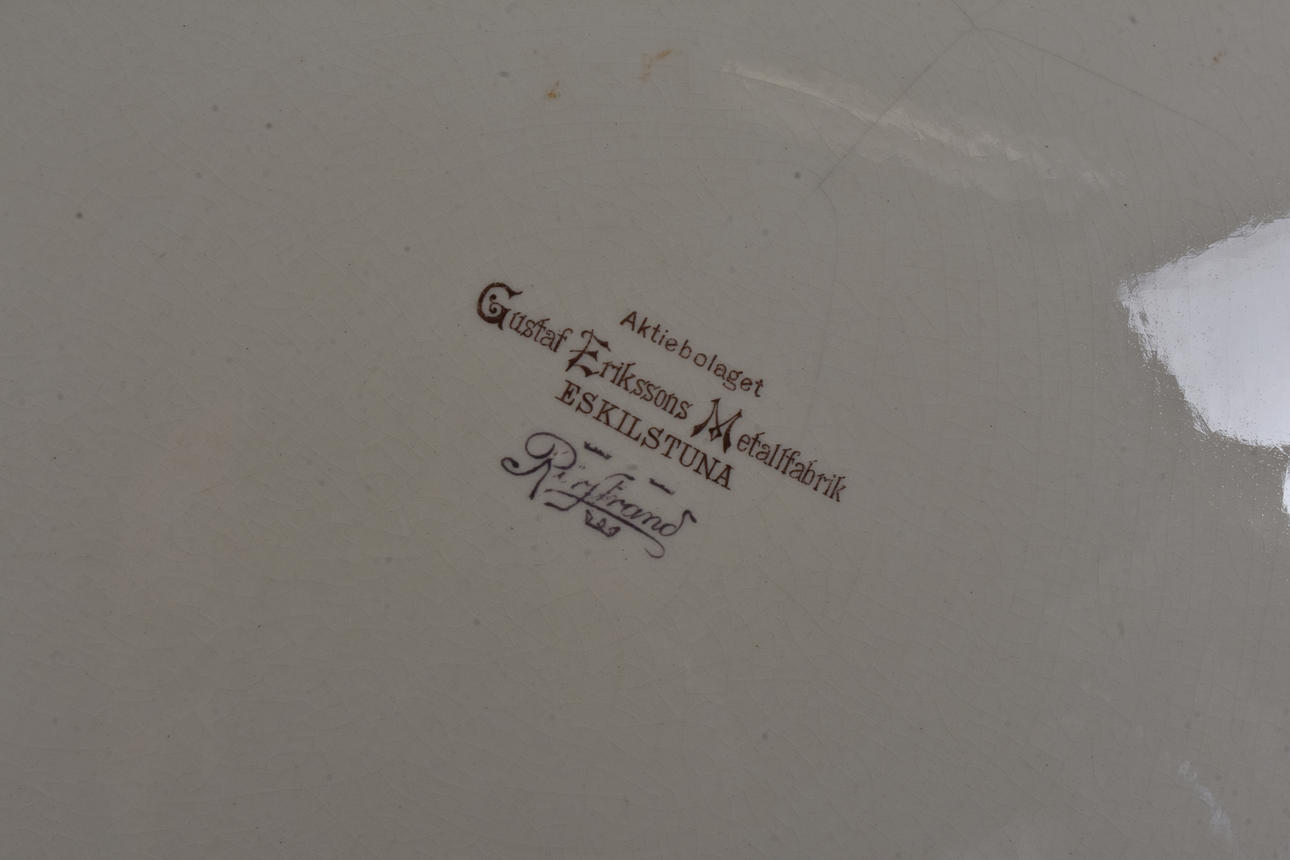 A tray, flintware, with metal frame, Rörstrand, ca 1890.