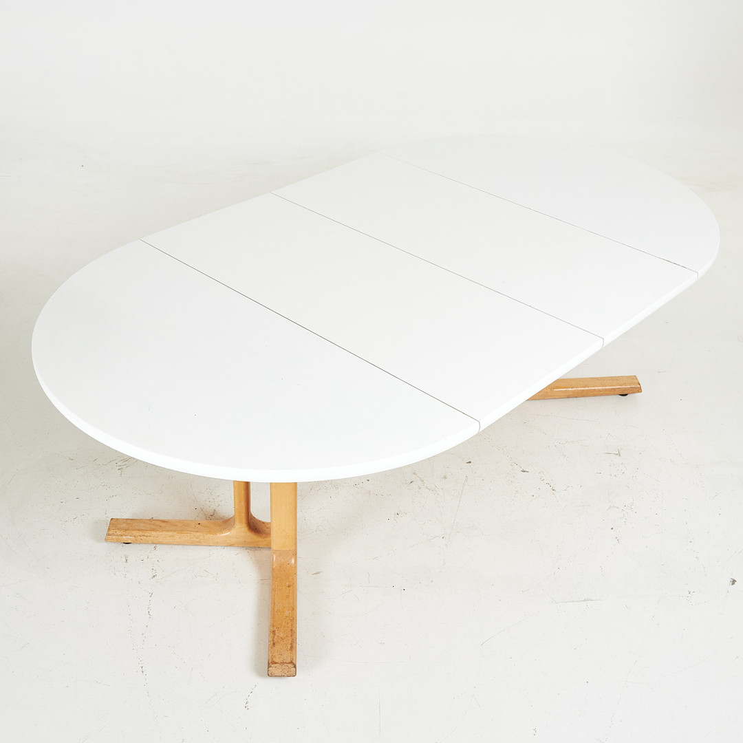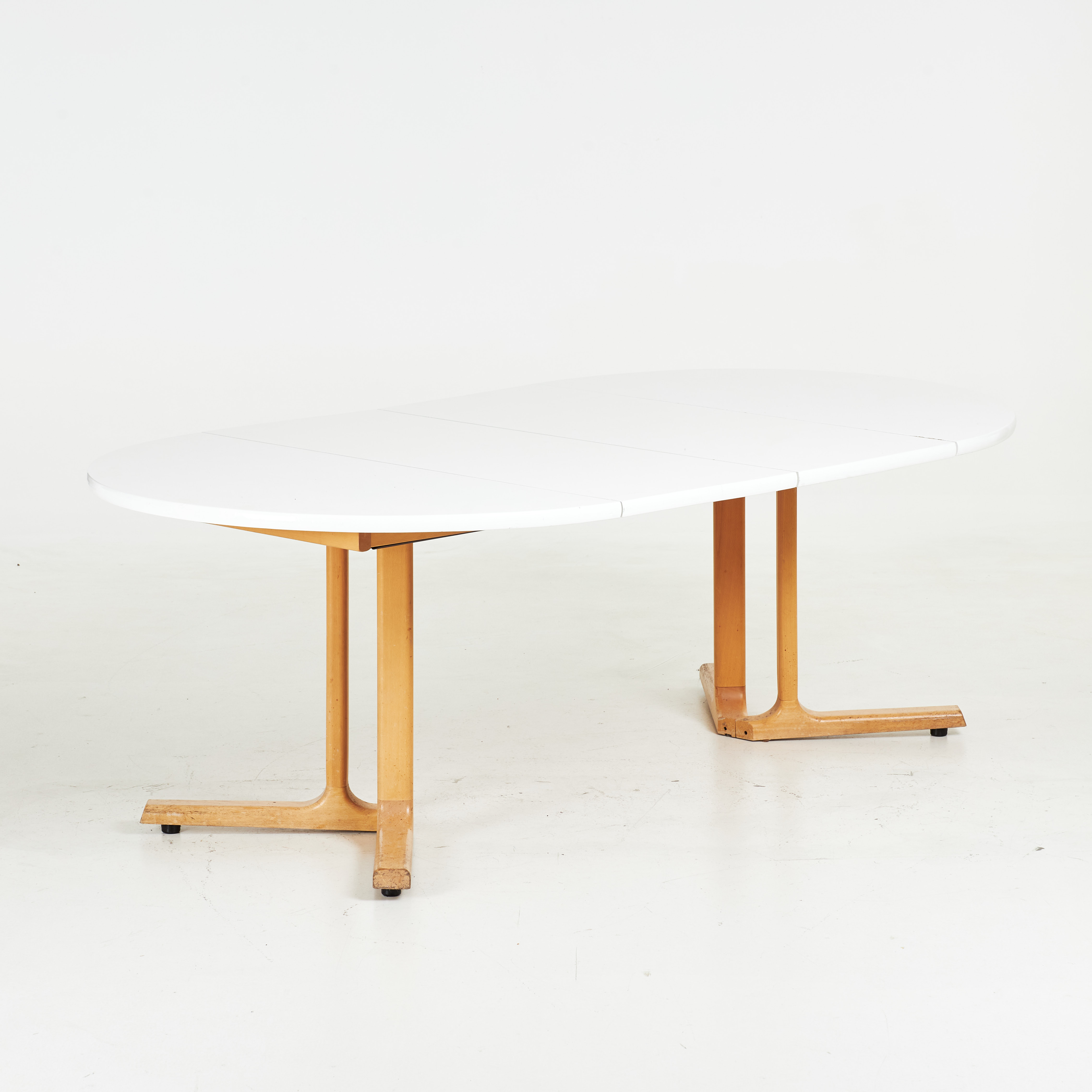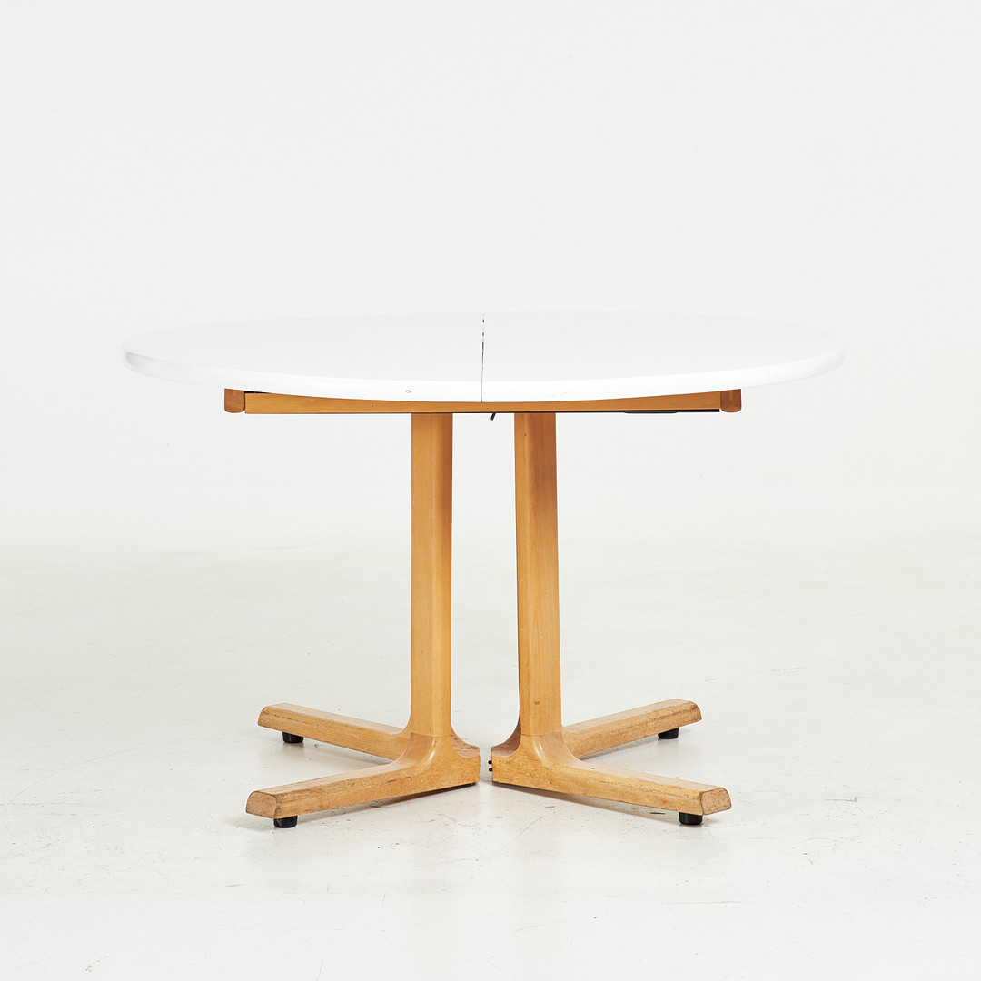 4394133. A beech dining table with 2 plates, late 20th century, unmarked.