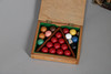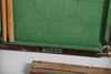 with two cues, balls, chalk, triangle and score board, 124cm x 62cm.