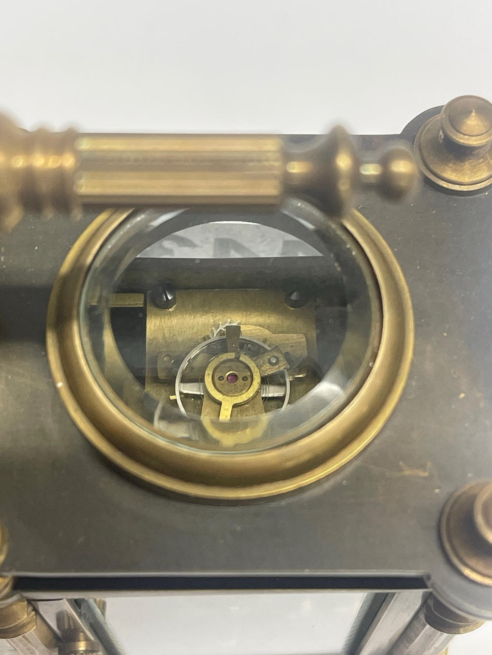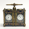 An enamelled bronze clock/barometer, H. 13cm.