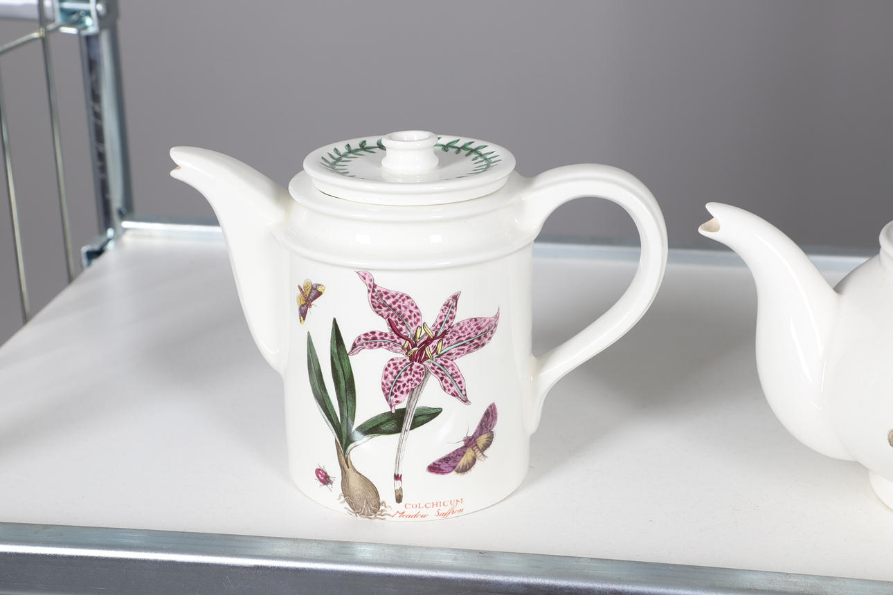 A set including a teapot (16cms high), coffee pot (16cms high), 6 coffee cups and saucers, milk jug and sugar bowl, and condiments.