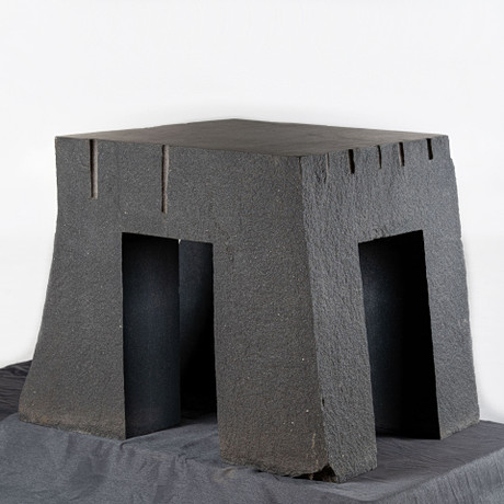 G.A.D., TABLE WITH STONE TOP. Soaped birch, slice in diabase.