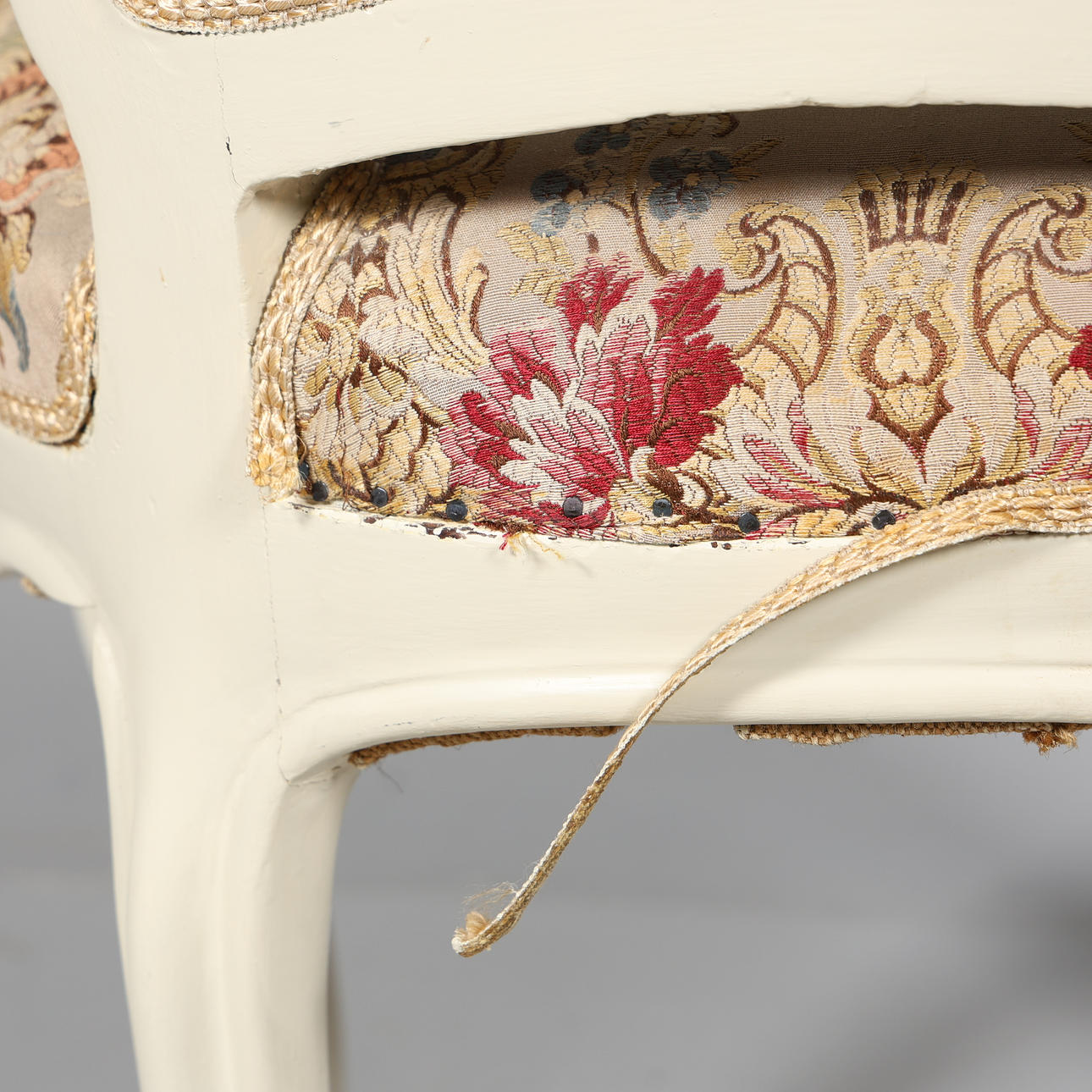 Normal wear and tear, loose edge bands, stains.