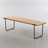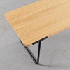 Solid lacquered oak, blackened steel underframe, scorched under the MAVIS table top. height approx. 42, 160x40 cm.