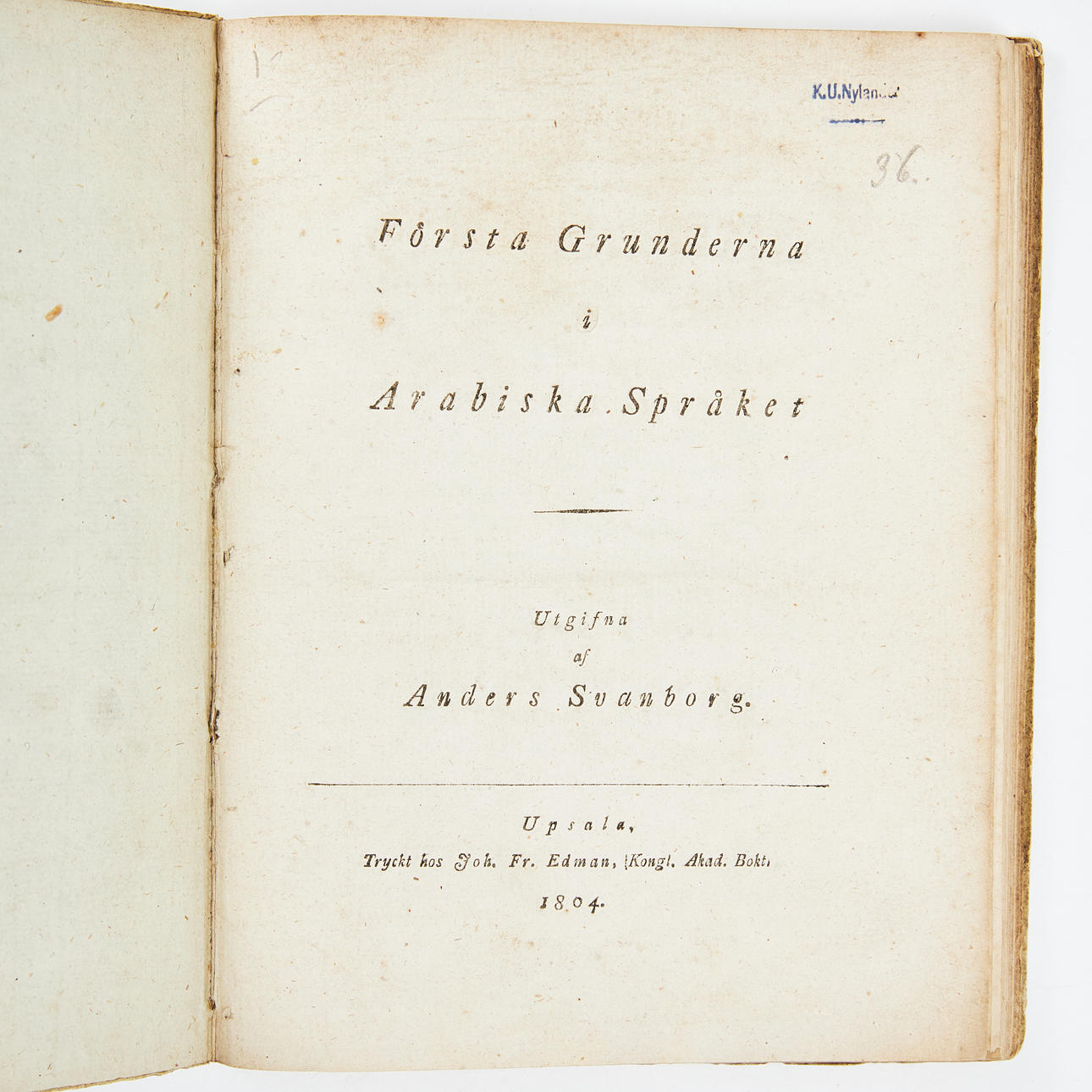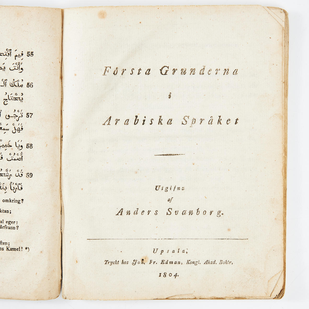 SWANSBORG, ANDERS. First basics of Arabic language, Uppsala 1804.