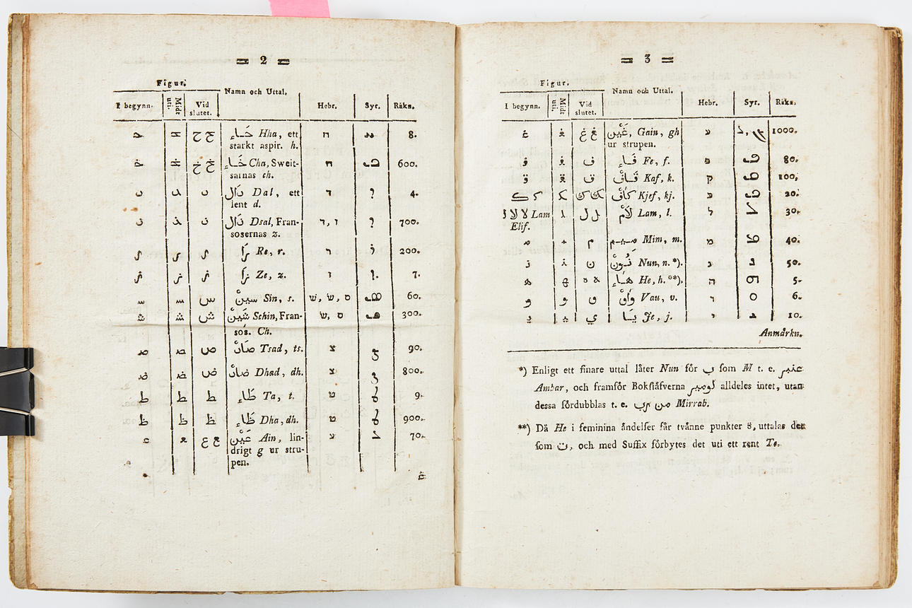 SWANSBORG, ANDERS. Öfningar i arabiska, Uppsala 1802.