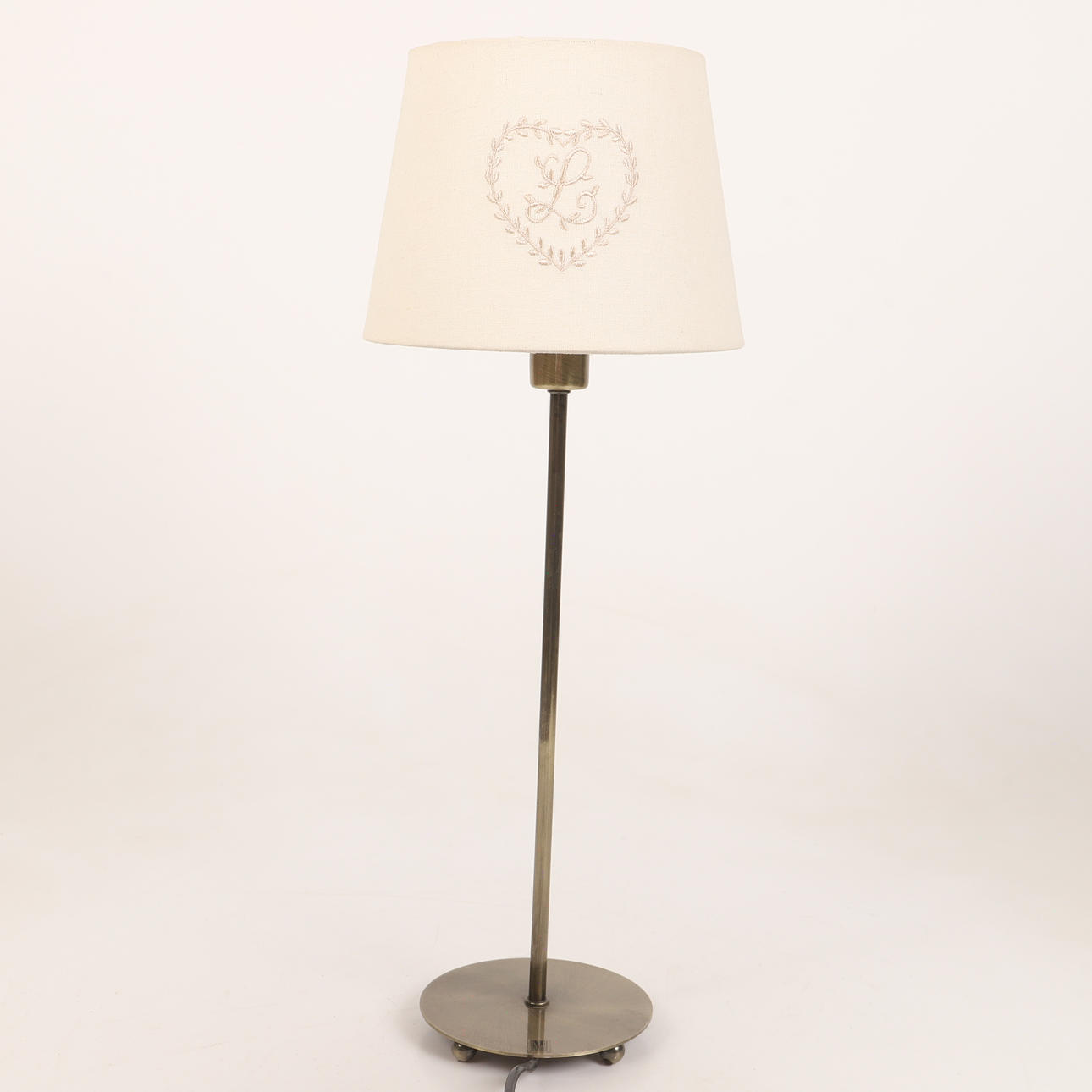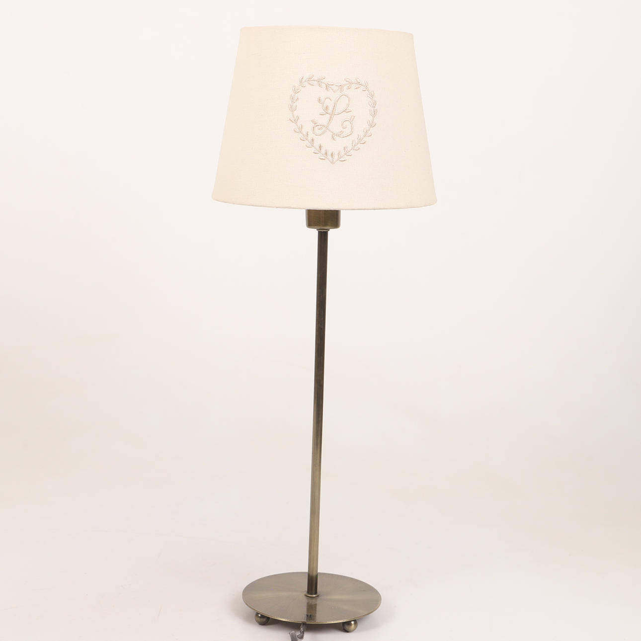 Height approx. 40, diameter 13 cm Screen, light linen with embroidery, height 15, diameter 15-20 cm.