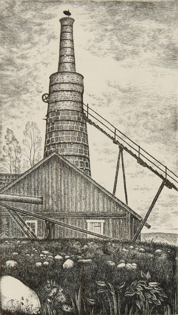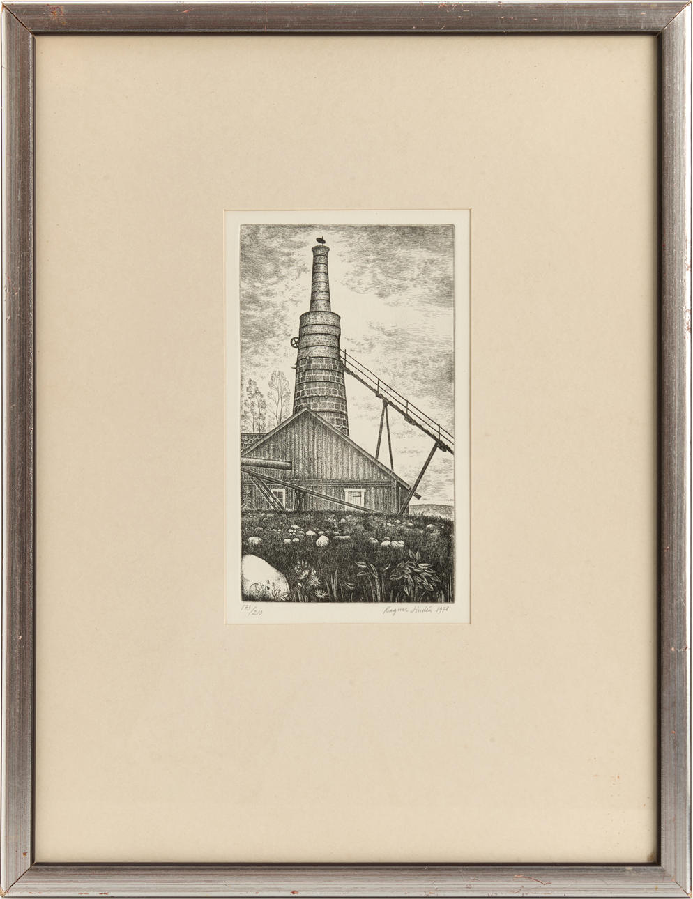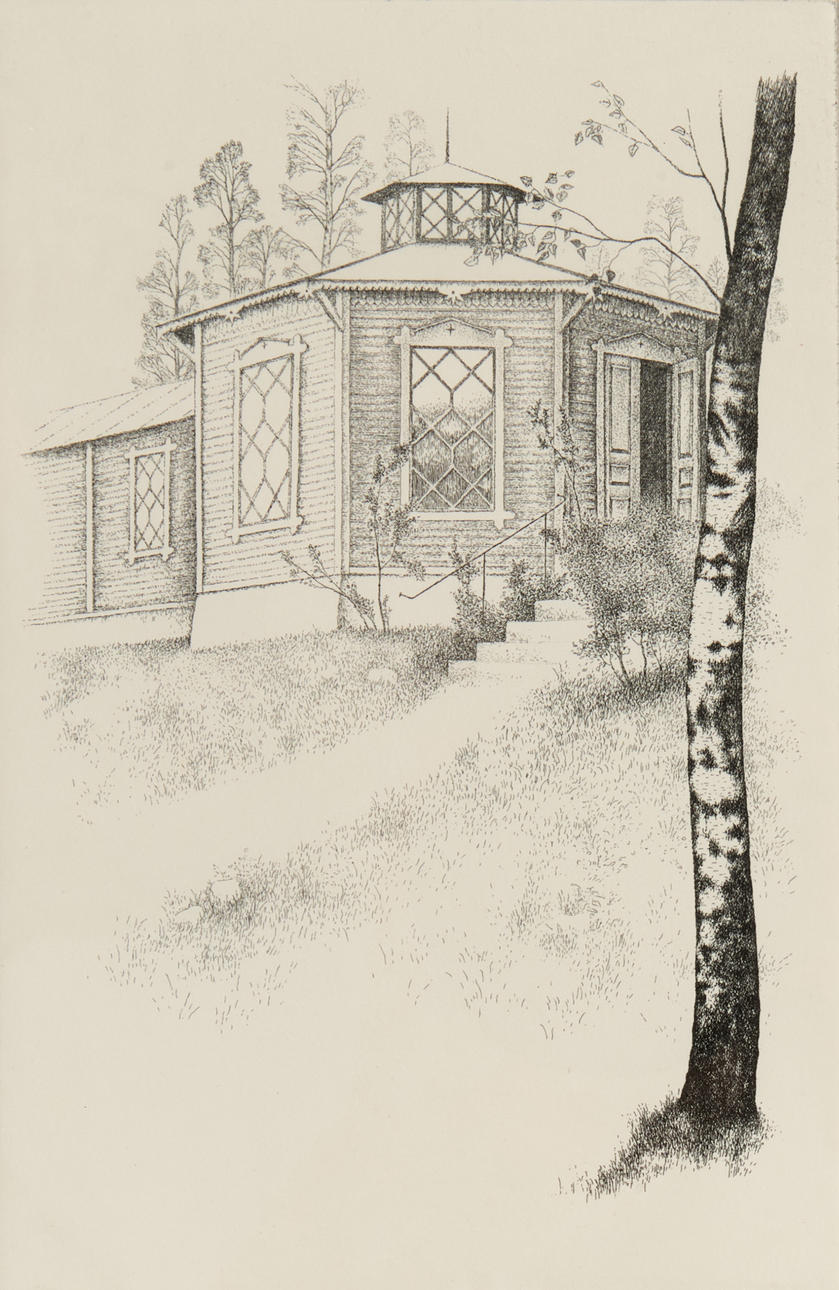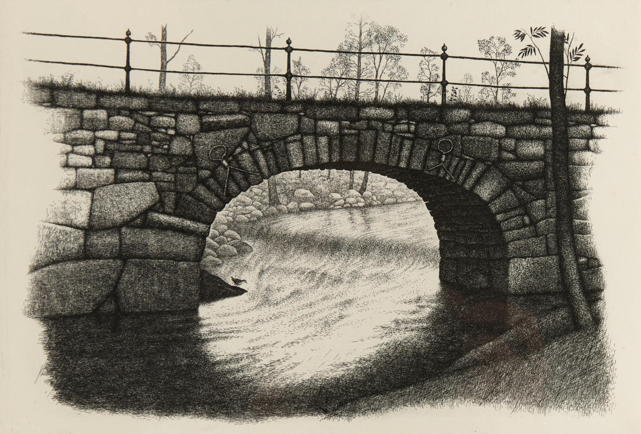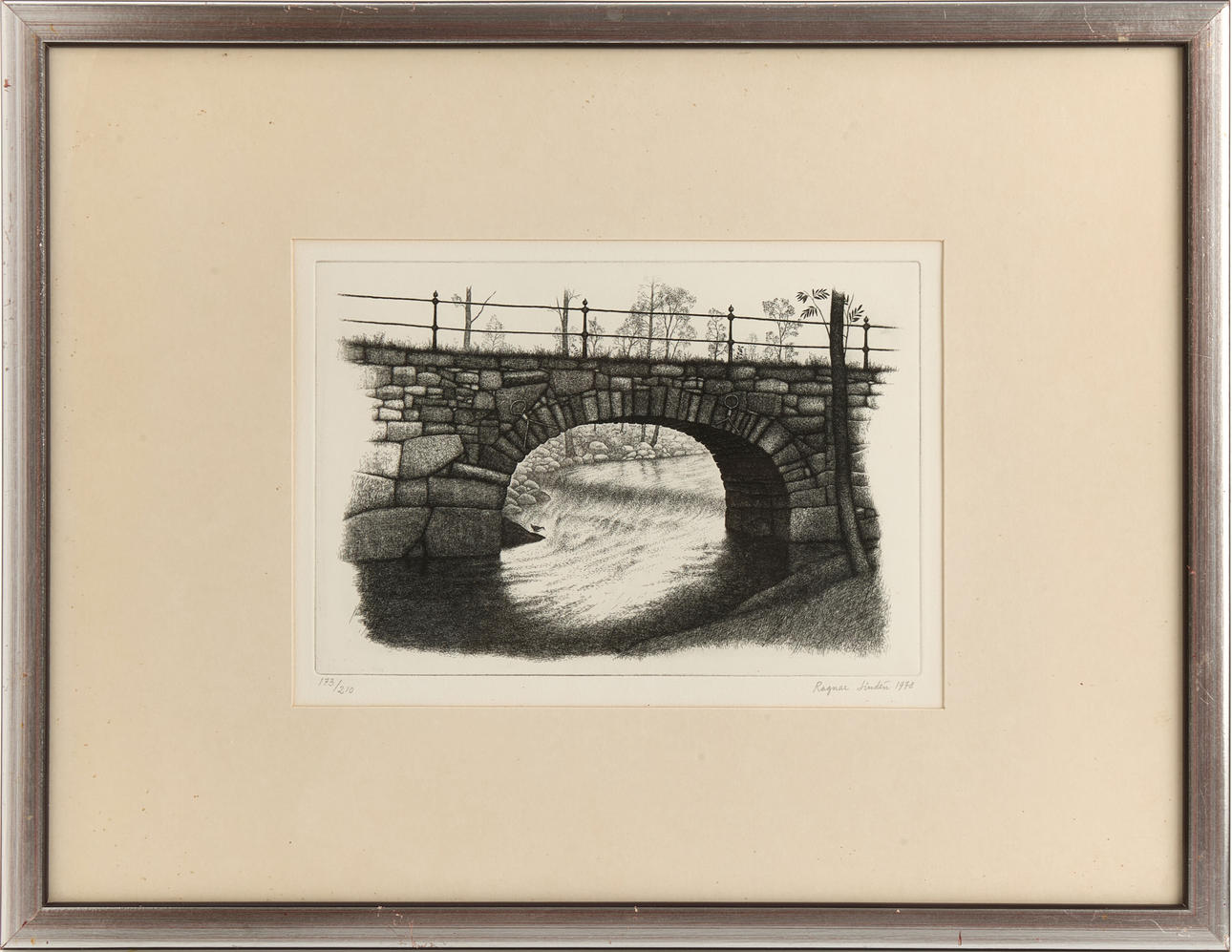 “Järleån — Flower kingdom — Bird kingdom”, stone bridge, sheet dimensions approx. 13.7x20.2 cm, frame dimensions approx. 31.5x41 cm.
