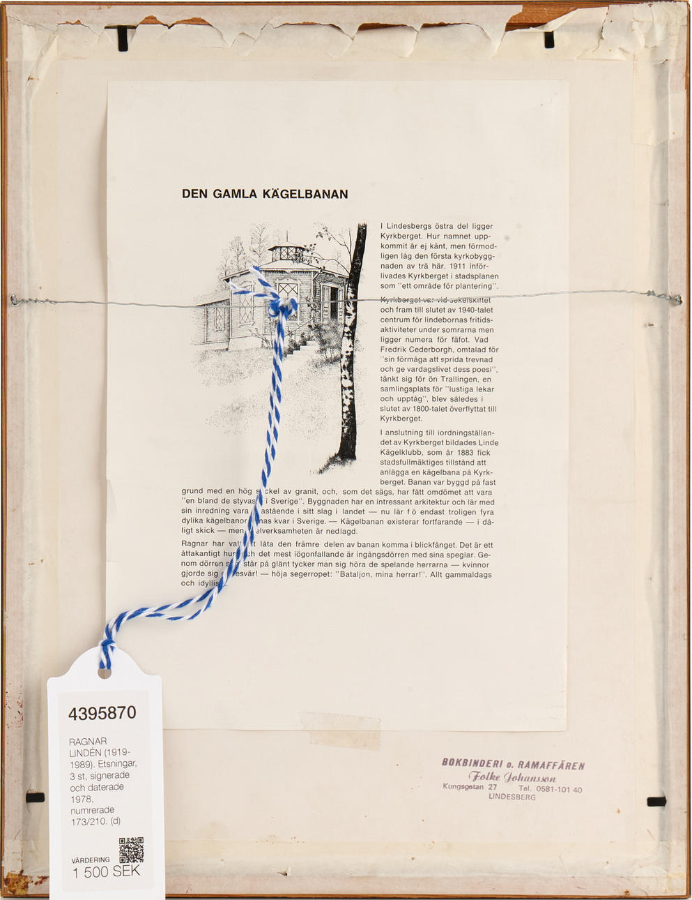 4395870. RAGNAR LINDÉN (1919-1989). Three etchings, signed and dated 1978, numbered 173/210.