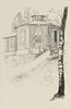 “Löa Hytta” (unique and worth seeing), mountain man's hut, sheet metal dimensions approx. 17.3x9.8 cm, frame dimensions approx. 41x31.5 cm