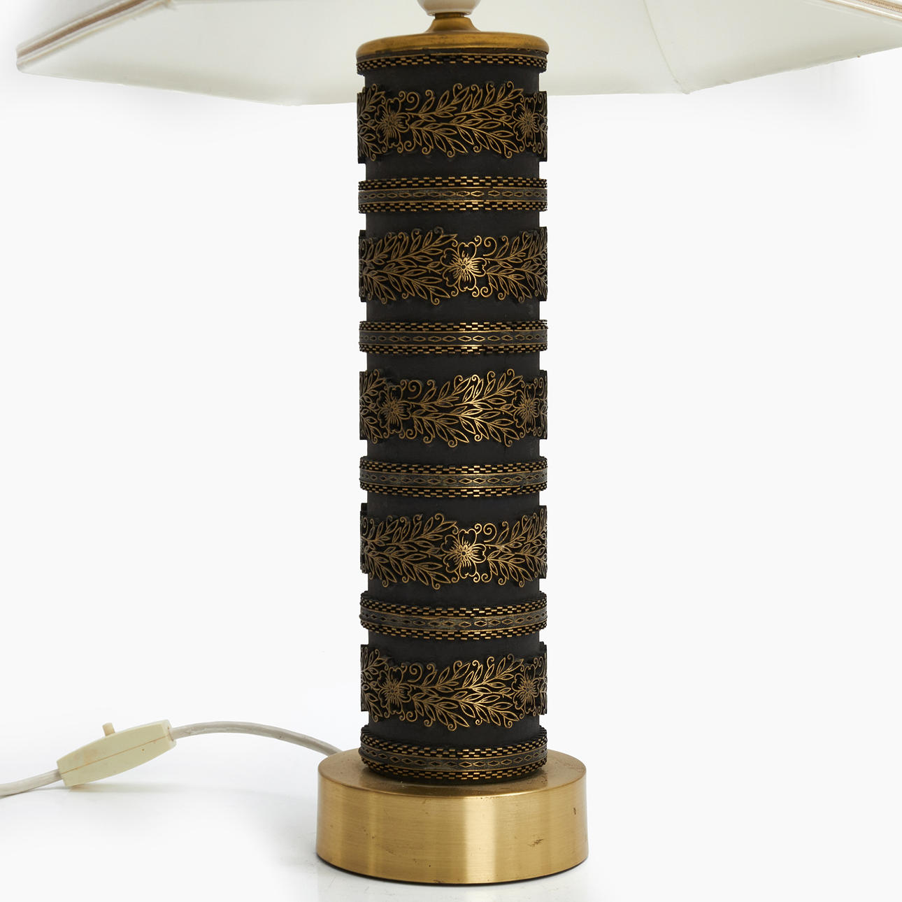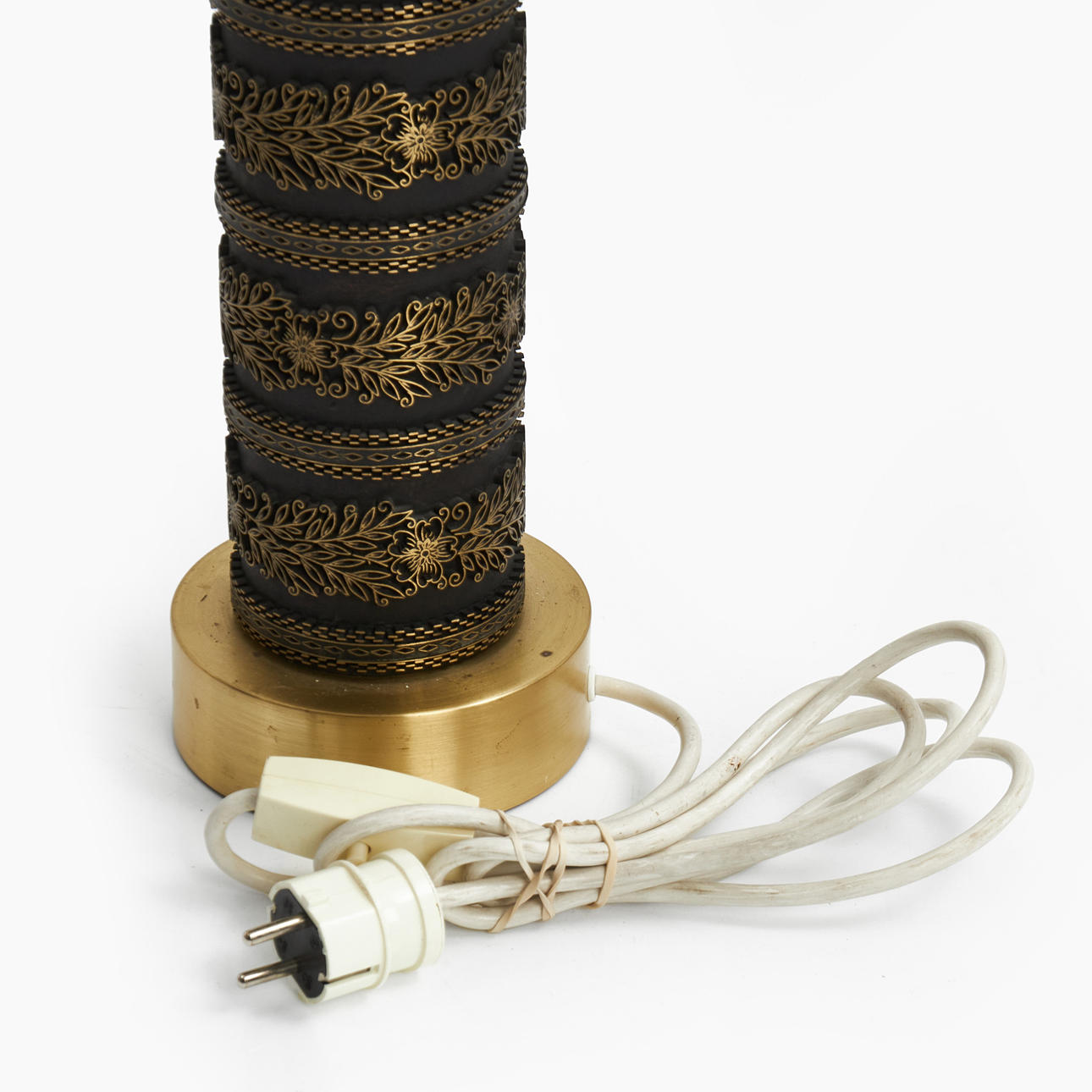 4396224. TABLE LAMP, Chinese wallpaper roll mounted on brass base.