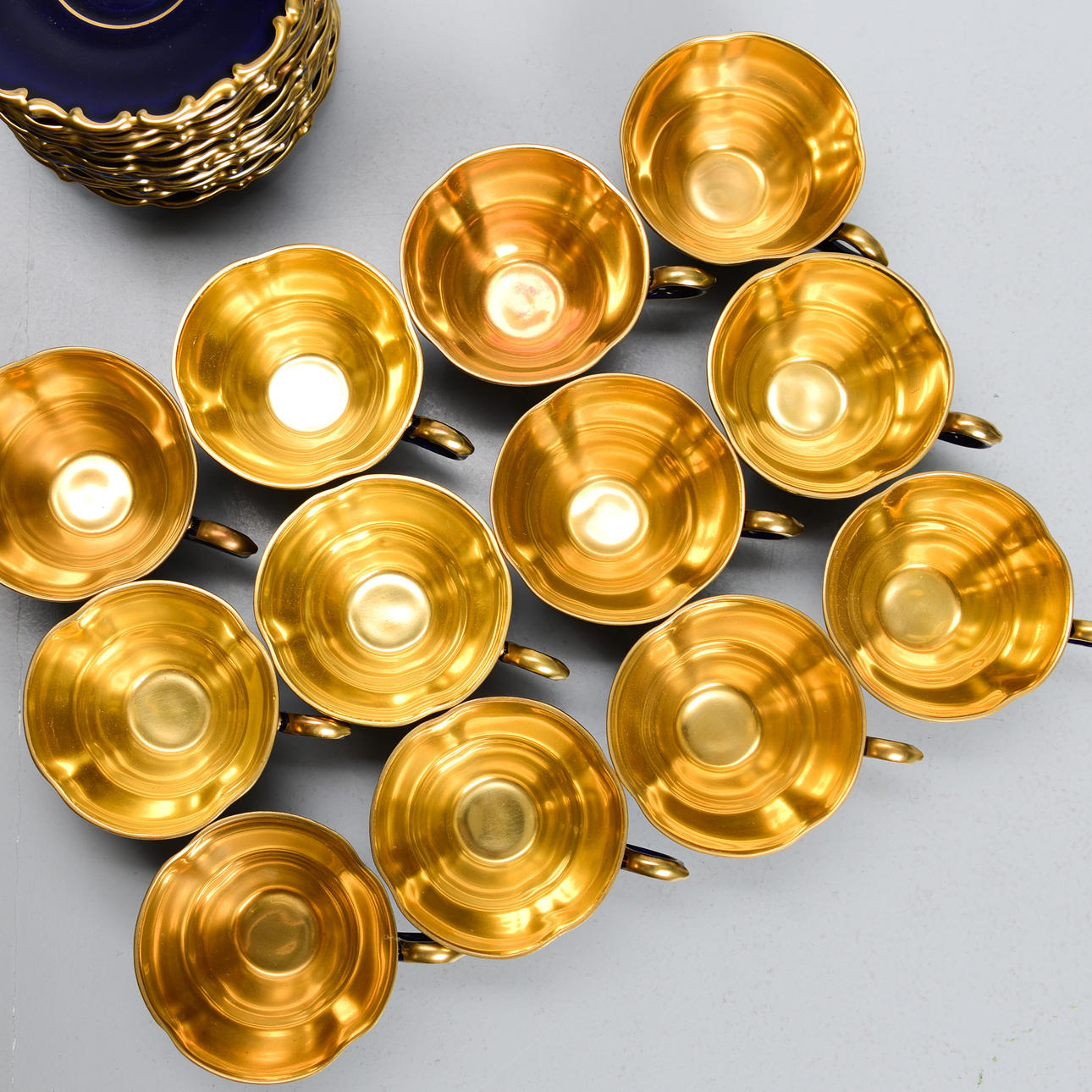 12 cups with saucer, cream jug, sugar bowl with lid.