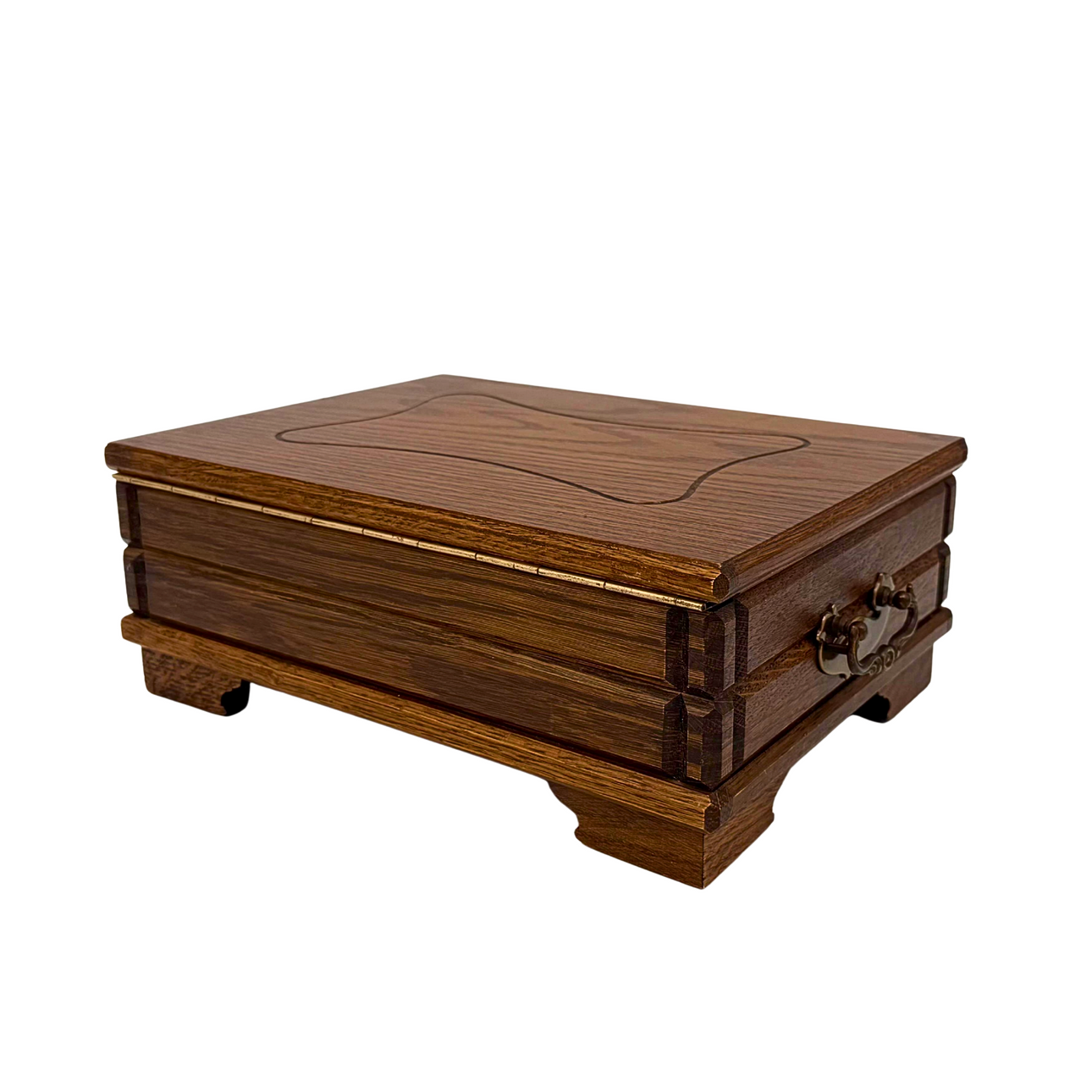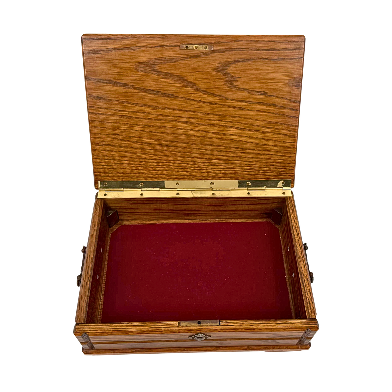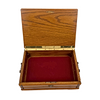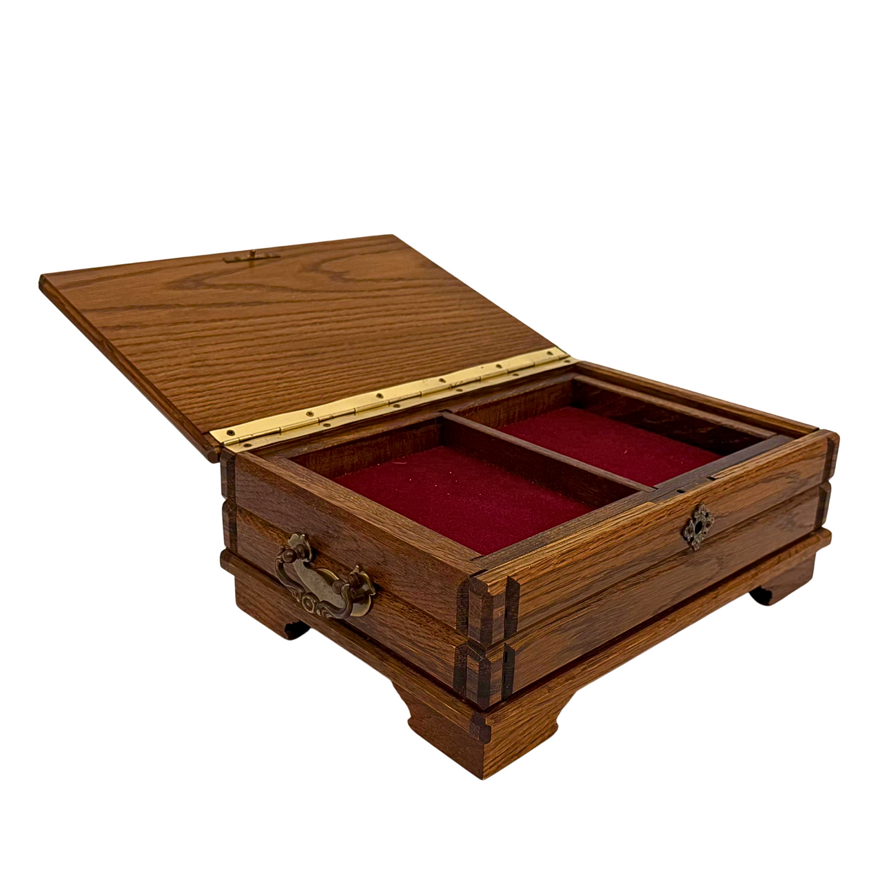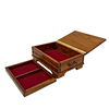 A sewing box or jewelry box with a removable compartment.