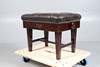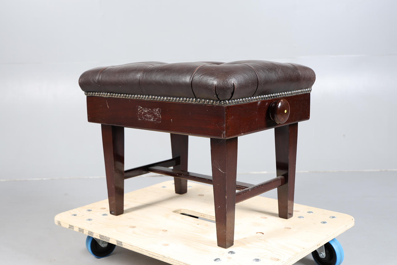 The buttoned leatherette top raised on square tapering legs, 59cm wide, 46cm deep, 48cm high fully lowered.