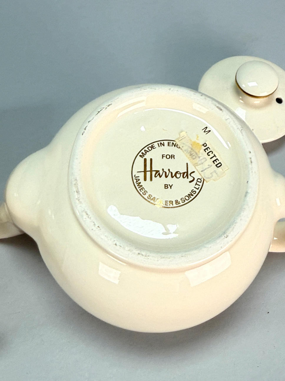 Ivory coloured, handmade in Stoke-on-Trent, England by James Sadler & Sons ltd.