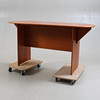 Veneered in different types of wood, with flaps, total length approx. 210 cm, width approx. 70 cm. Height approx. 106 cm.