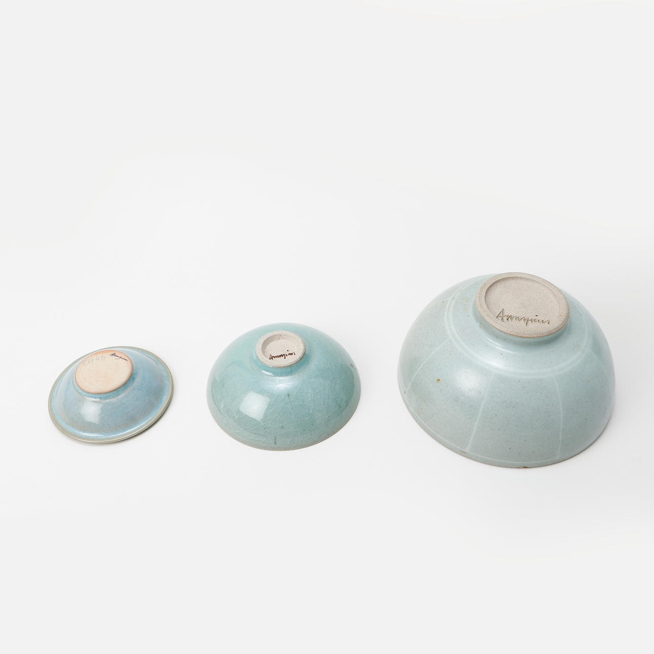 Celadon-colored glaze. Diameter about 12 - 21 cm, height about 4 - 10.5 cm.