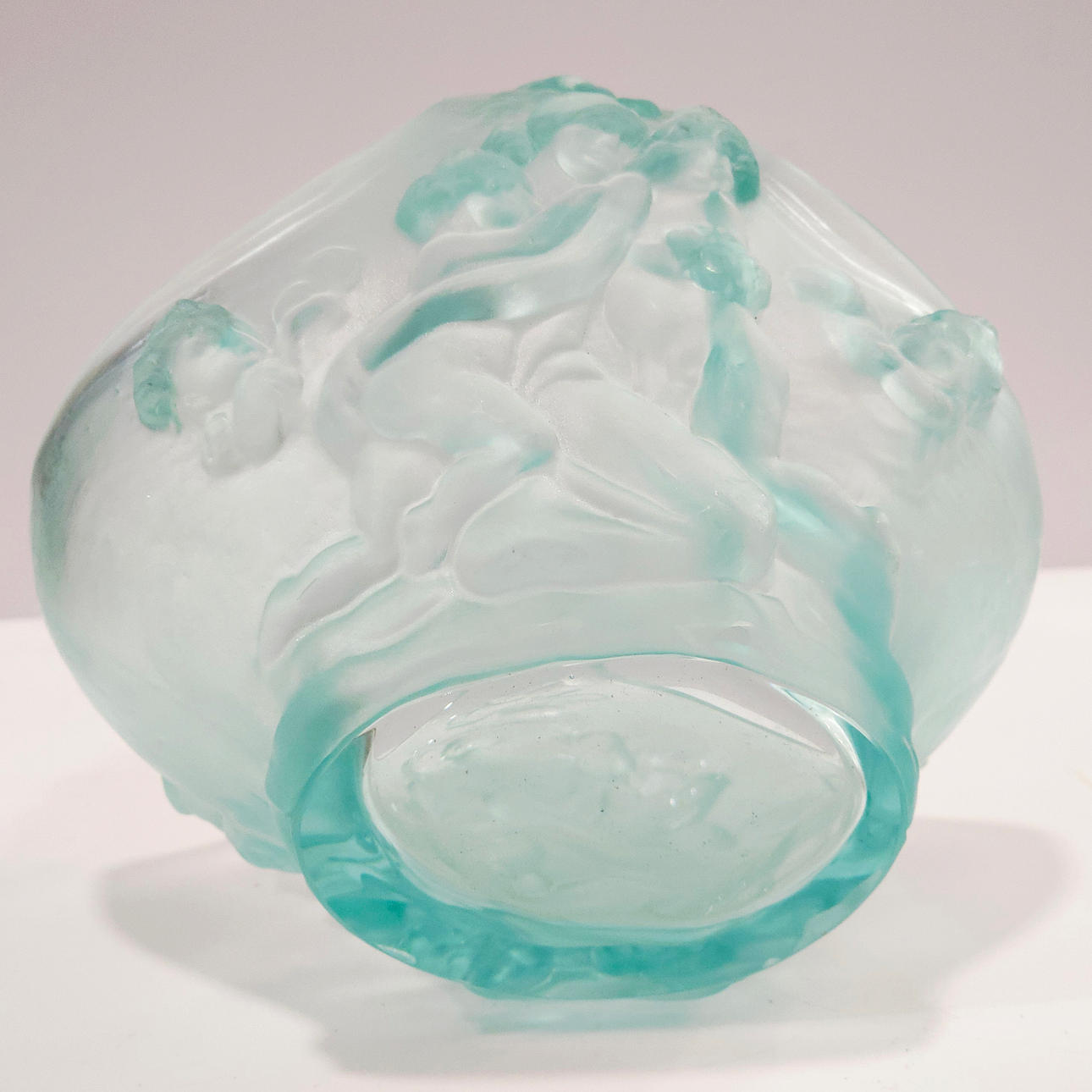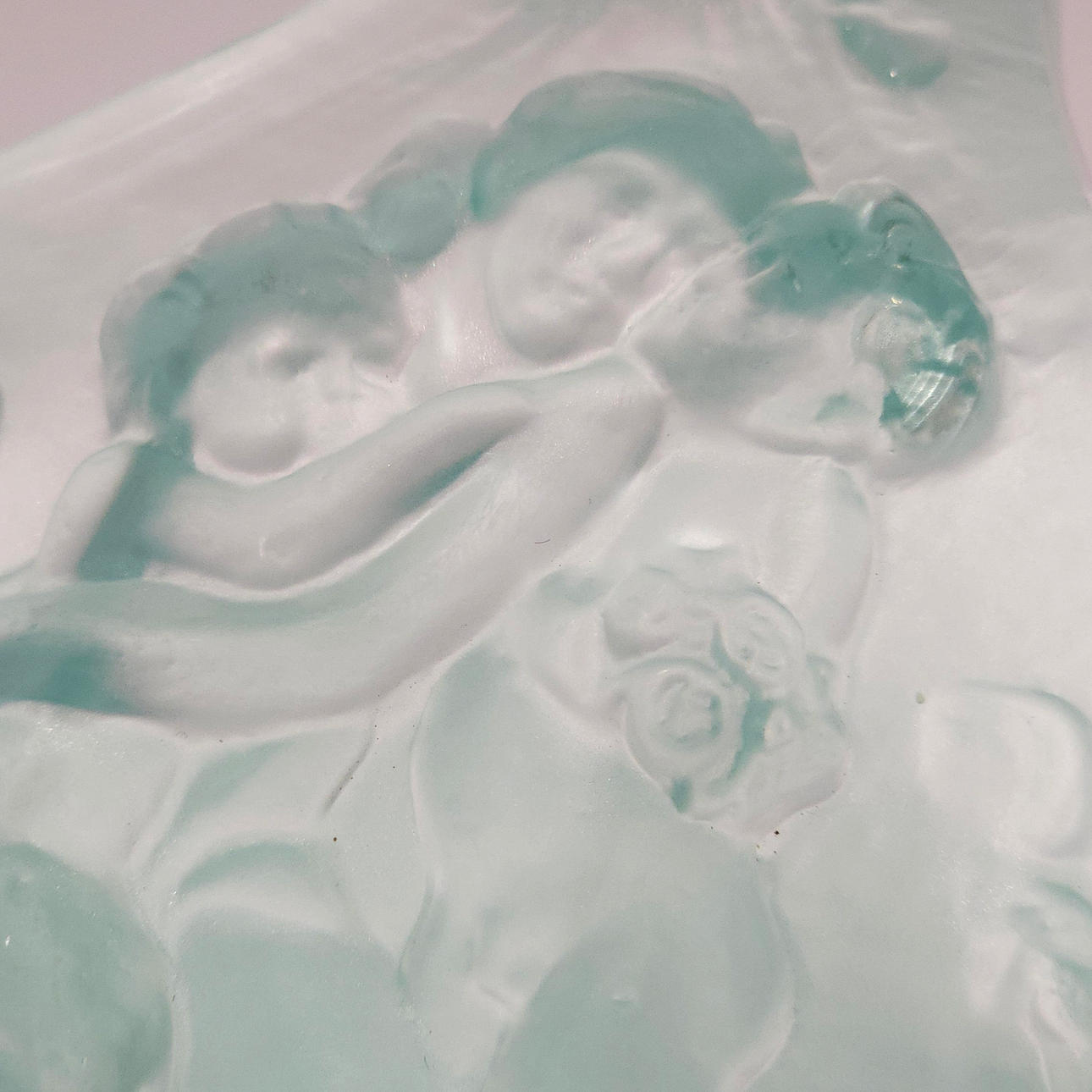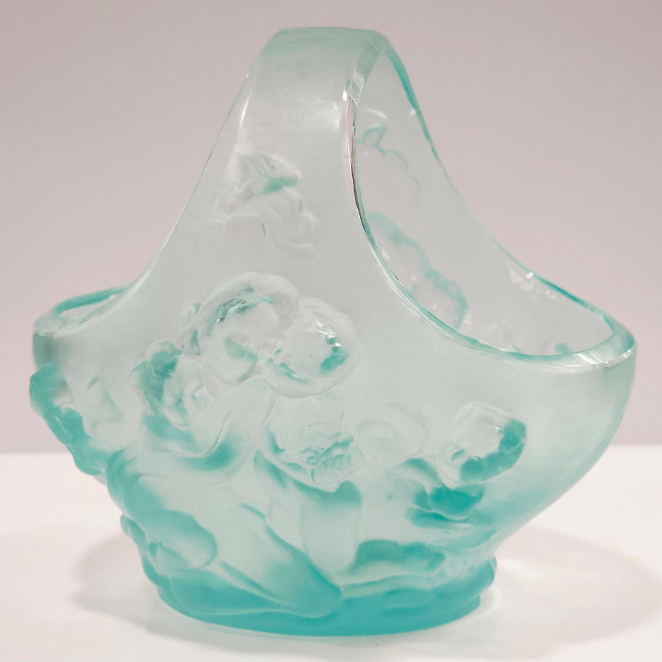 Blown glass basket with neoclassical scene.