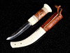 Made of leather, masur birch & engraved reindeer horn in stylized decor.