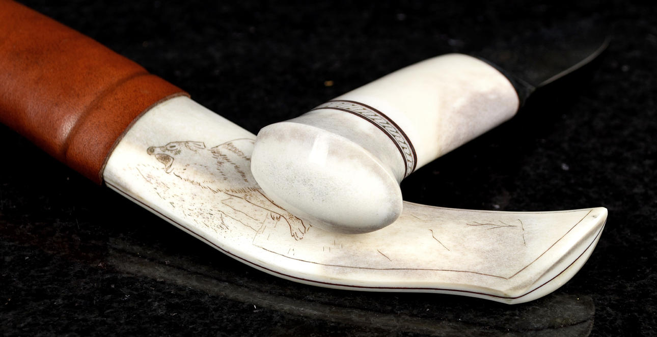 Made of leather & engraved reindeer horn.