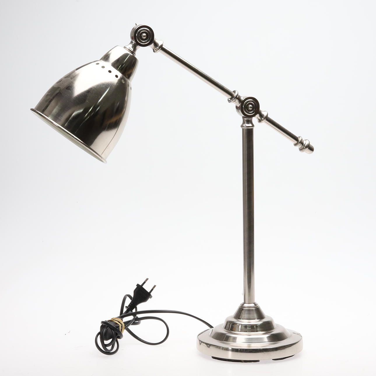 Adjustable metal table lamp.