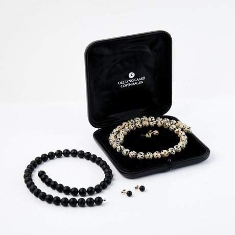 One with cultured freshwater pearls in different light tones, length 45 cm and the other with cultured freshwater pearls in dark tones in brown quartz, length 43 cm.