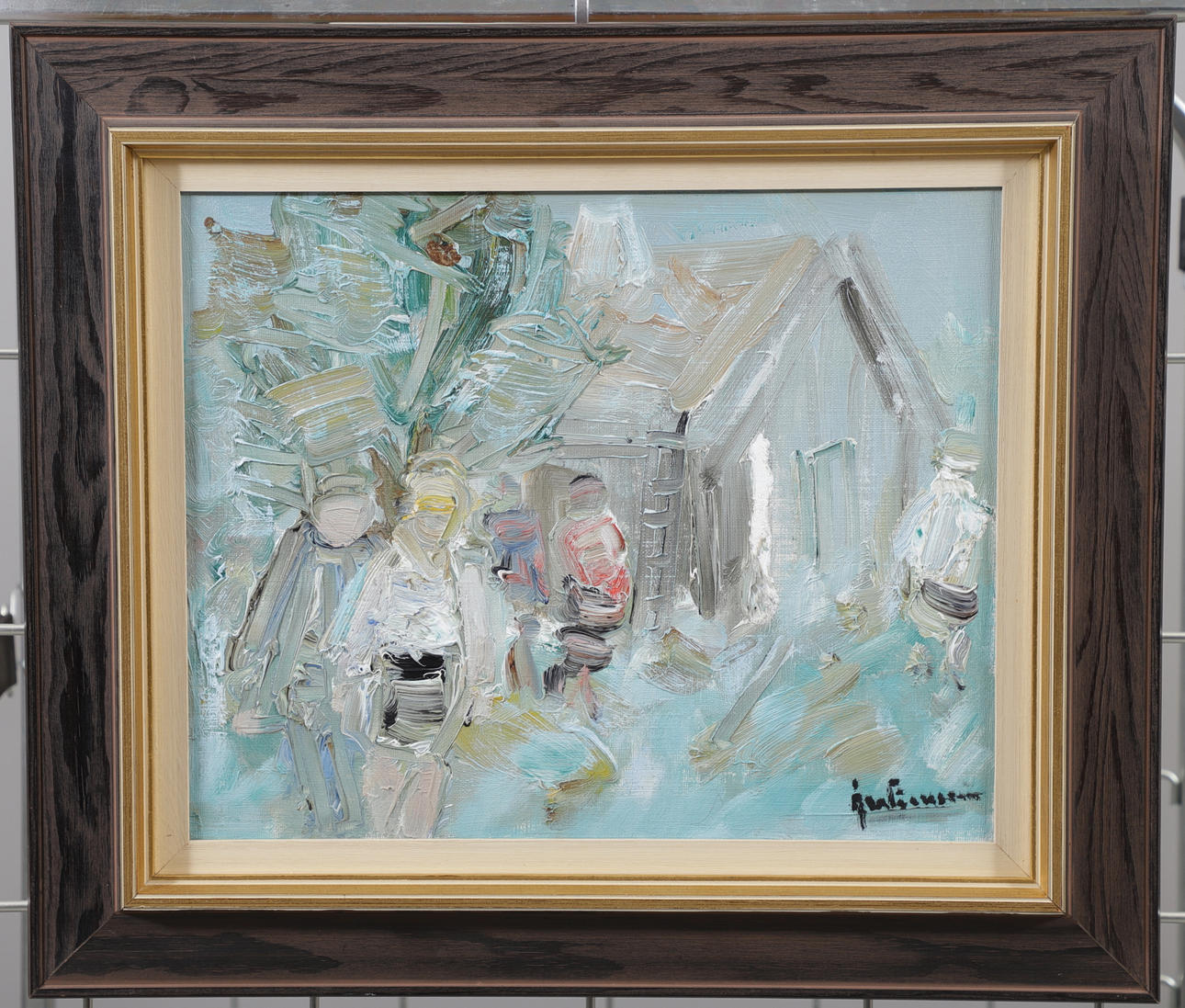4398293. ÅKE WICKSTRÖM. Figures at barn, Oil on canvas, signed.