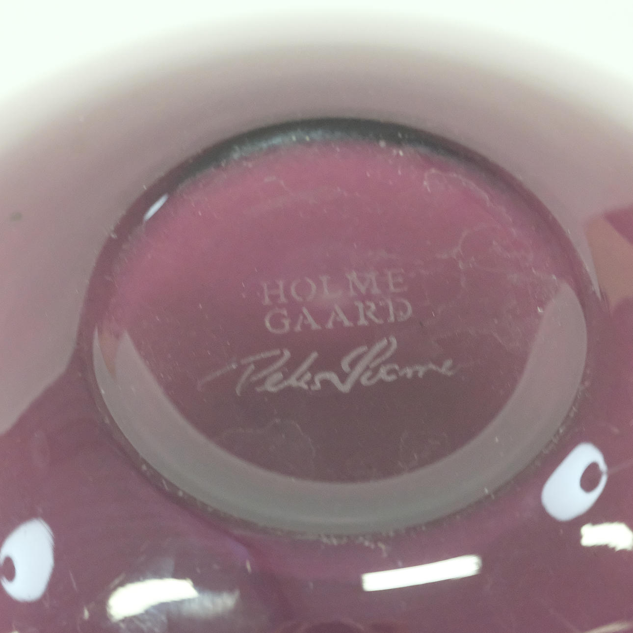 Globe shaped, violet glass, stamp signed, height 15,5 and 19,5 cm.