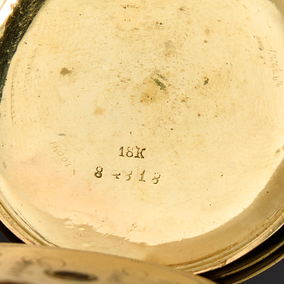 4398456. POCKET WATCH, 18k gold, patterned decor, key chain.