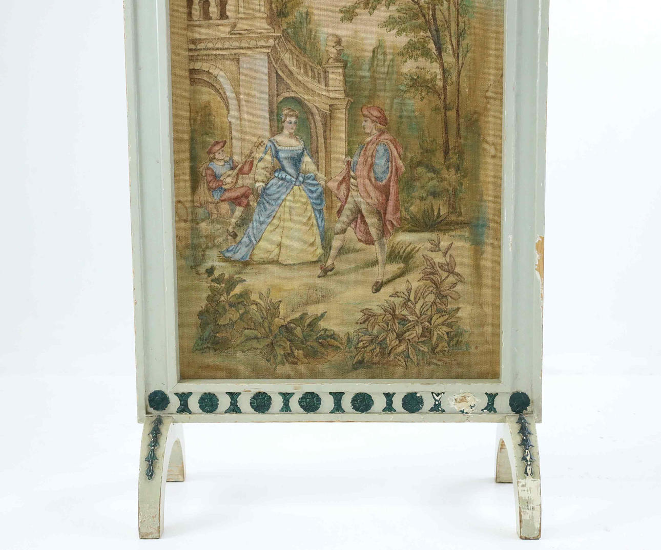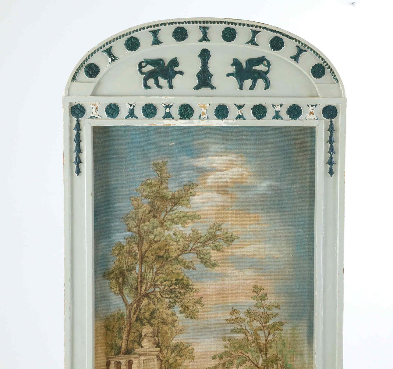 Normal wear and tear, marks, chafing, plaster drop on decor elements, screen slightly movable/wiggable. Wooden frame painted later.