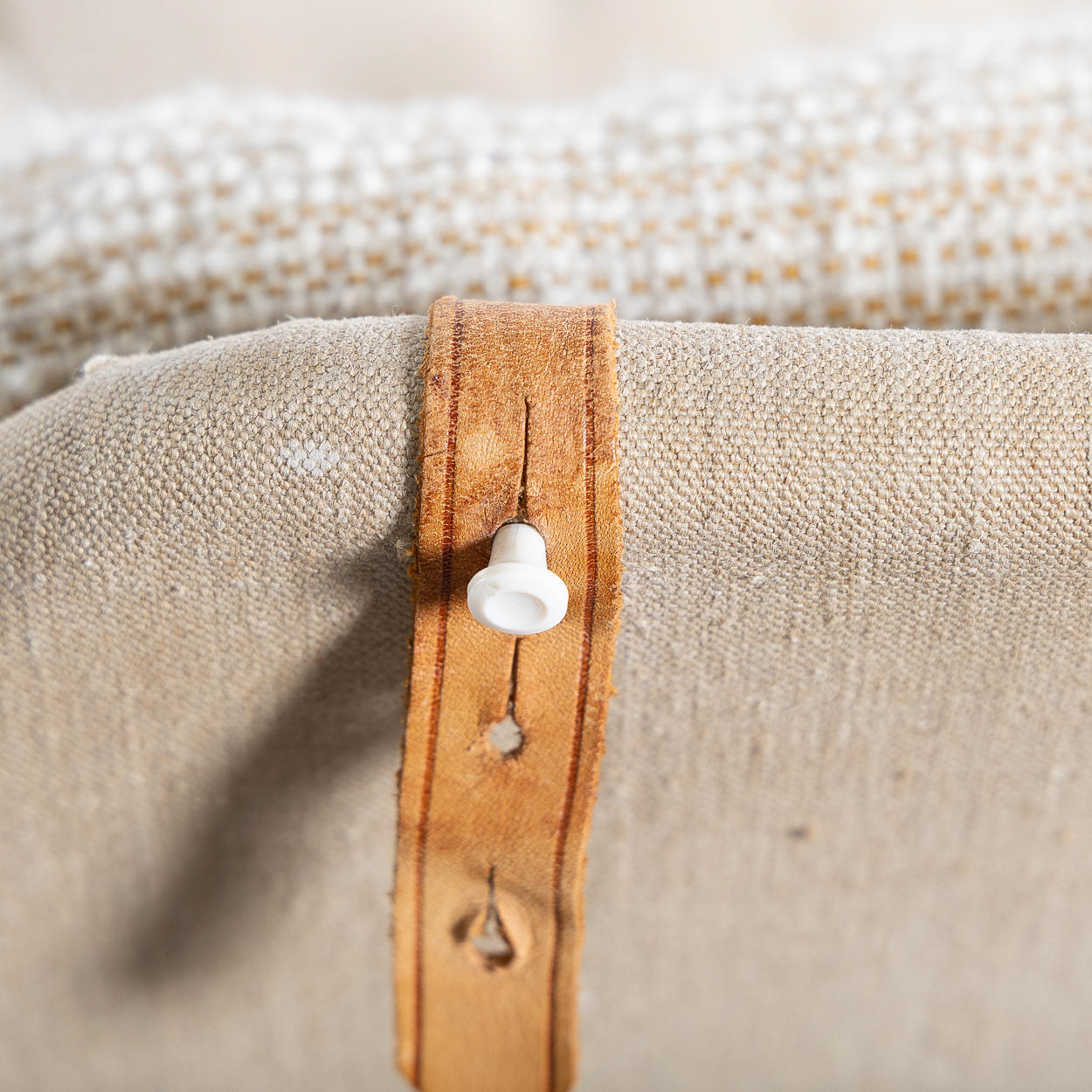 Frame in beech, carrier fabric in canvas, upholstery in wool bouclé.
