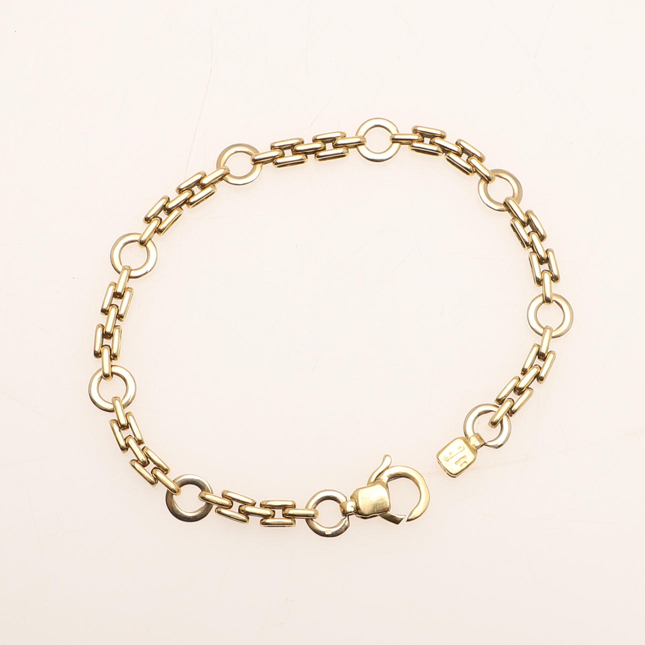 AN 18CT GOLD FANCY LINK BRACELET.