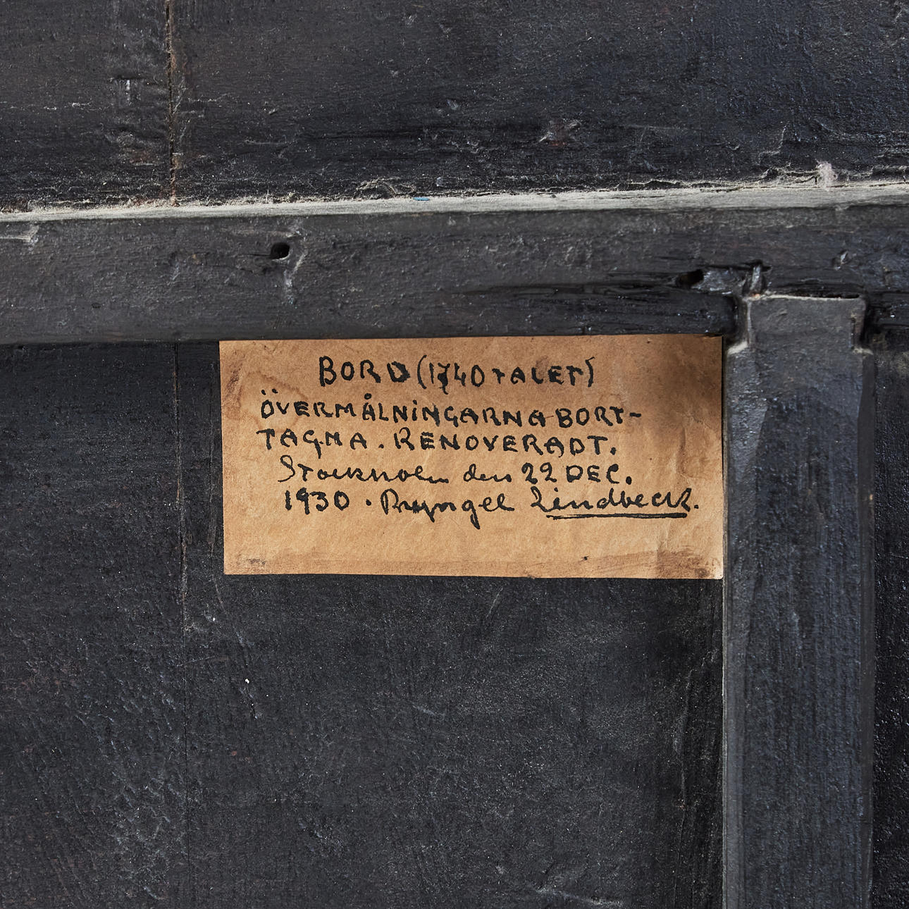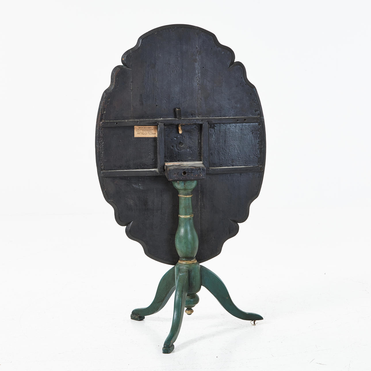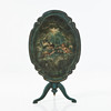 Painted in blue-green with motif of puttis on the disc, according to label on the underside renovated 1930 in Stockholm, dimensions approx. 70, 97 x 69 cm.